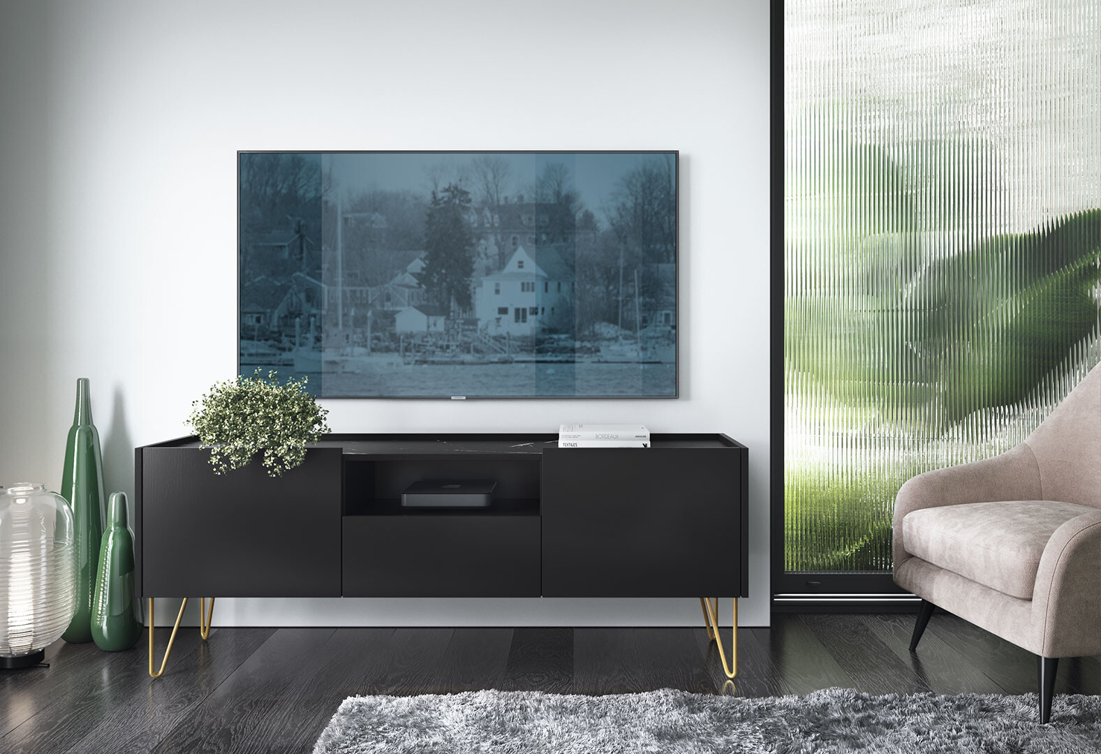 - TV stolek RTV 144 černý grafit / černý royal mramor Harmony