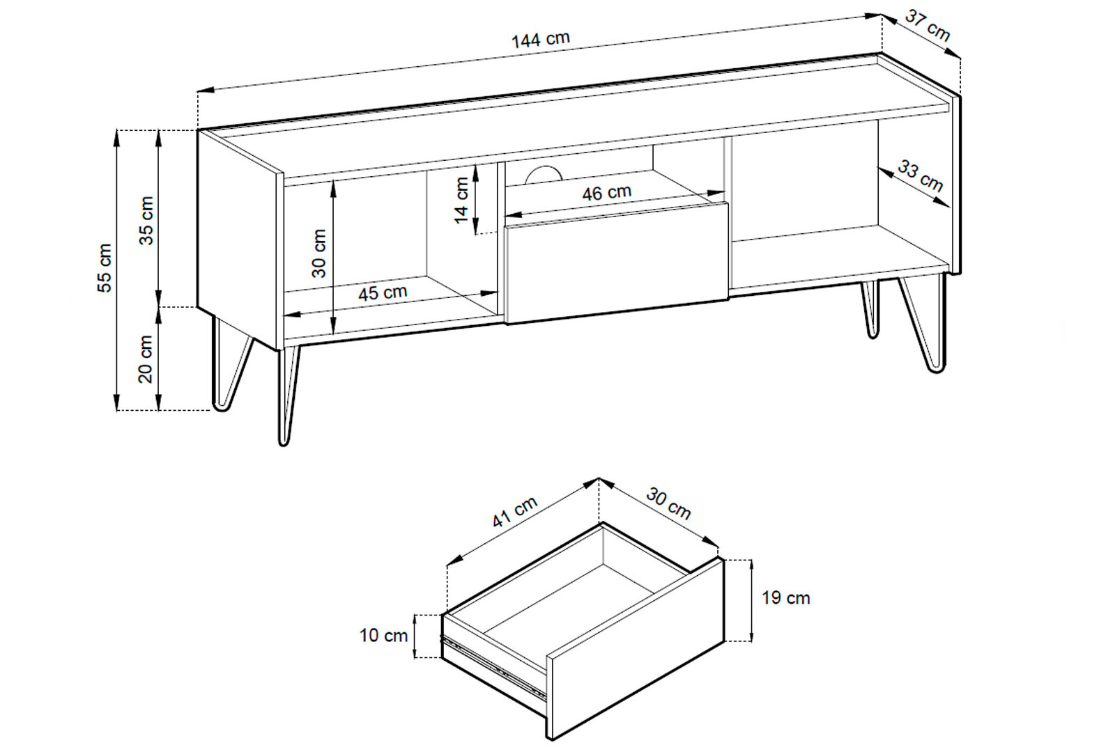 TV stolek RTV 144 černý grafit / černý royal mramor Harmony