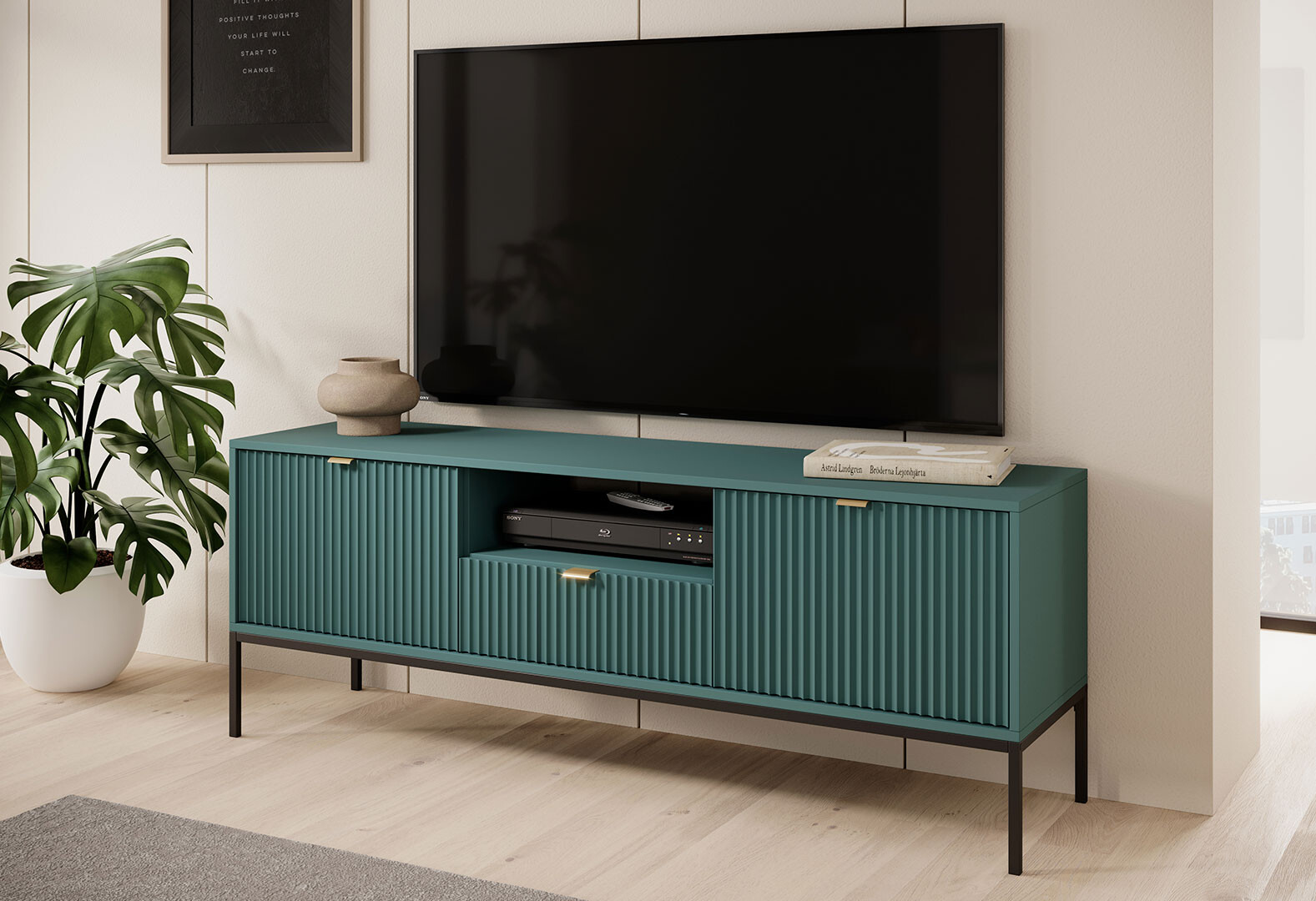 Fotografie 3 - TV stolek RTV154 zelený Nova Černé nohy / zlatý úchytky