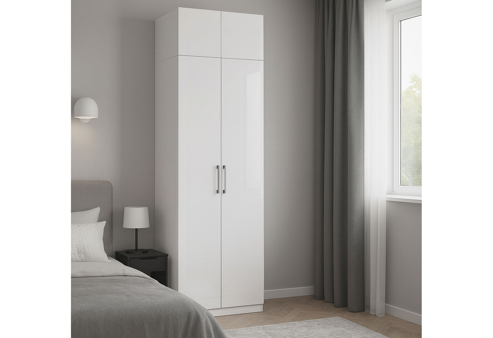 Skříň 2dv bez zrcadel + Nástavec 2 dv, série N bílá Family