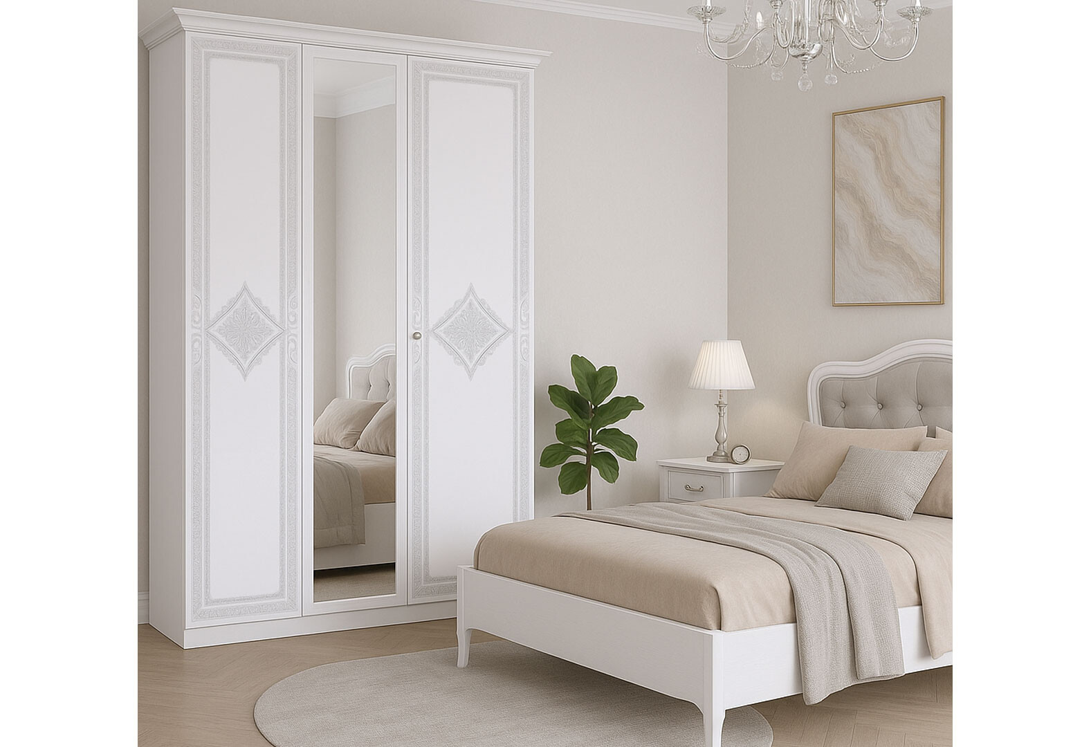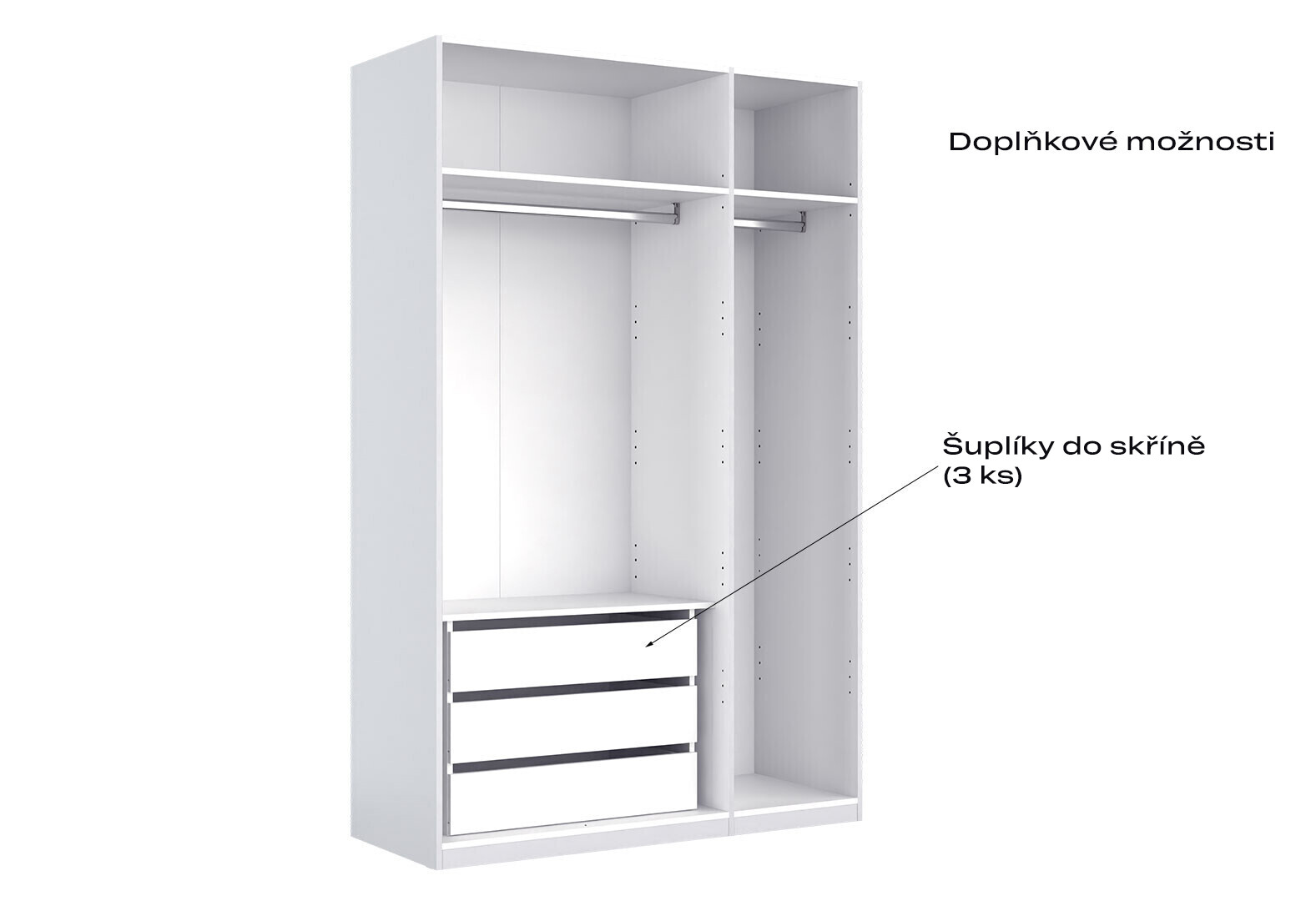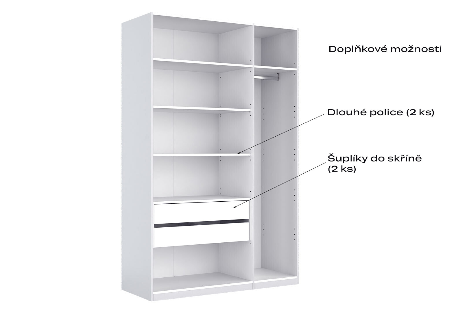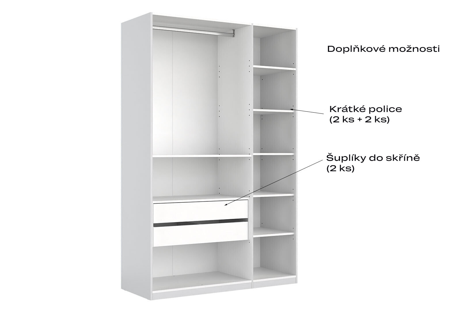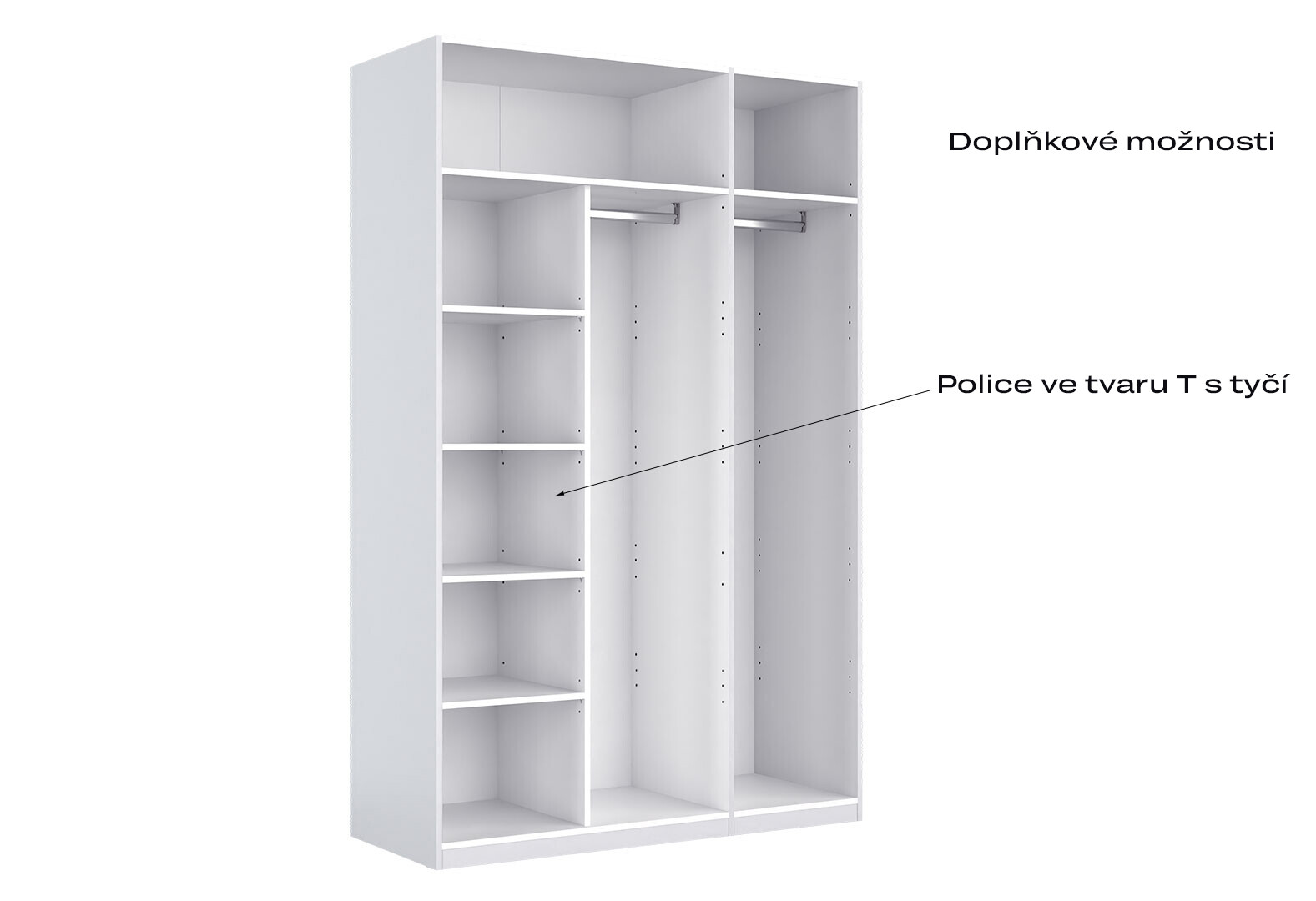 - Skříň 3D (se zrcadlem), série N, bílý lesk Luiza
