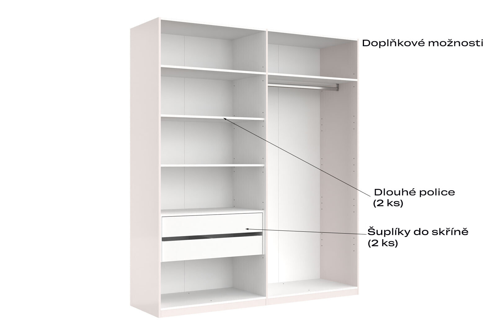 - Skříň 4D (se zrcadly), série N, bílý lesk Luiza