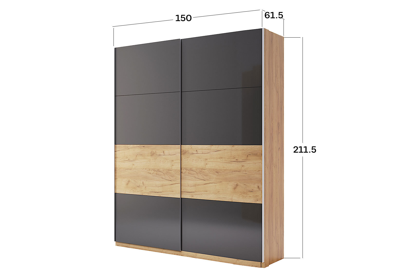 - Skříň s posuvnými dveřmi 1.5x2.1 Mat Láva/Dub Kraft, série N Ramona