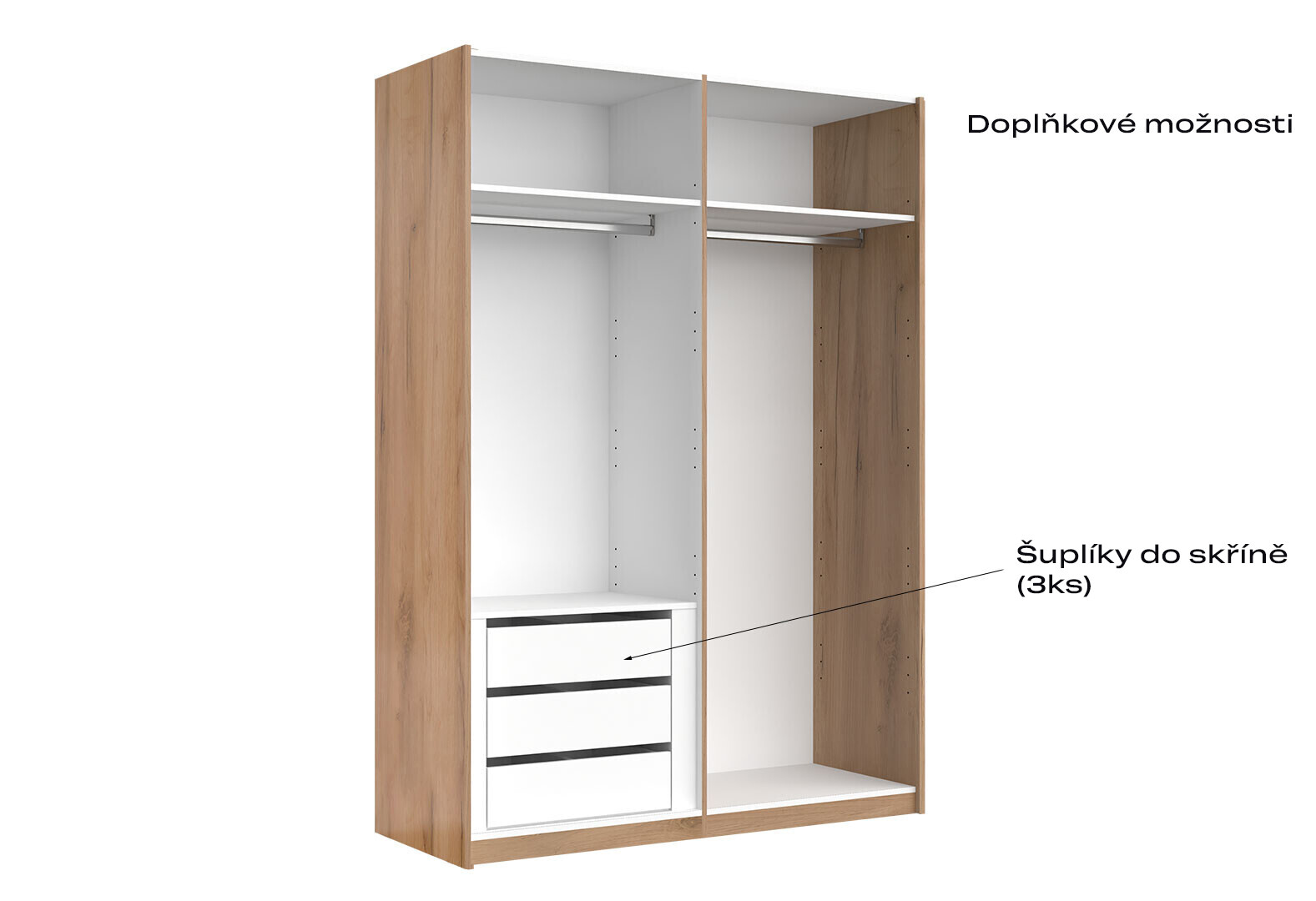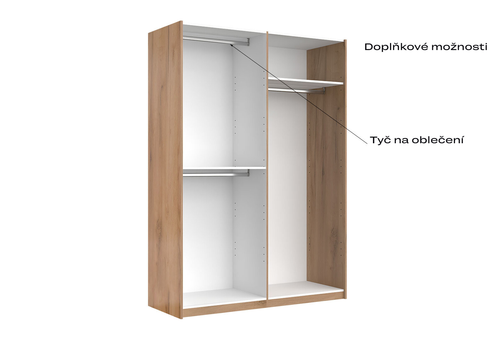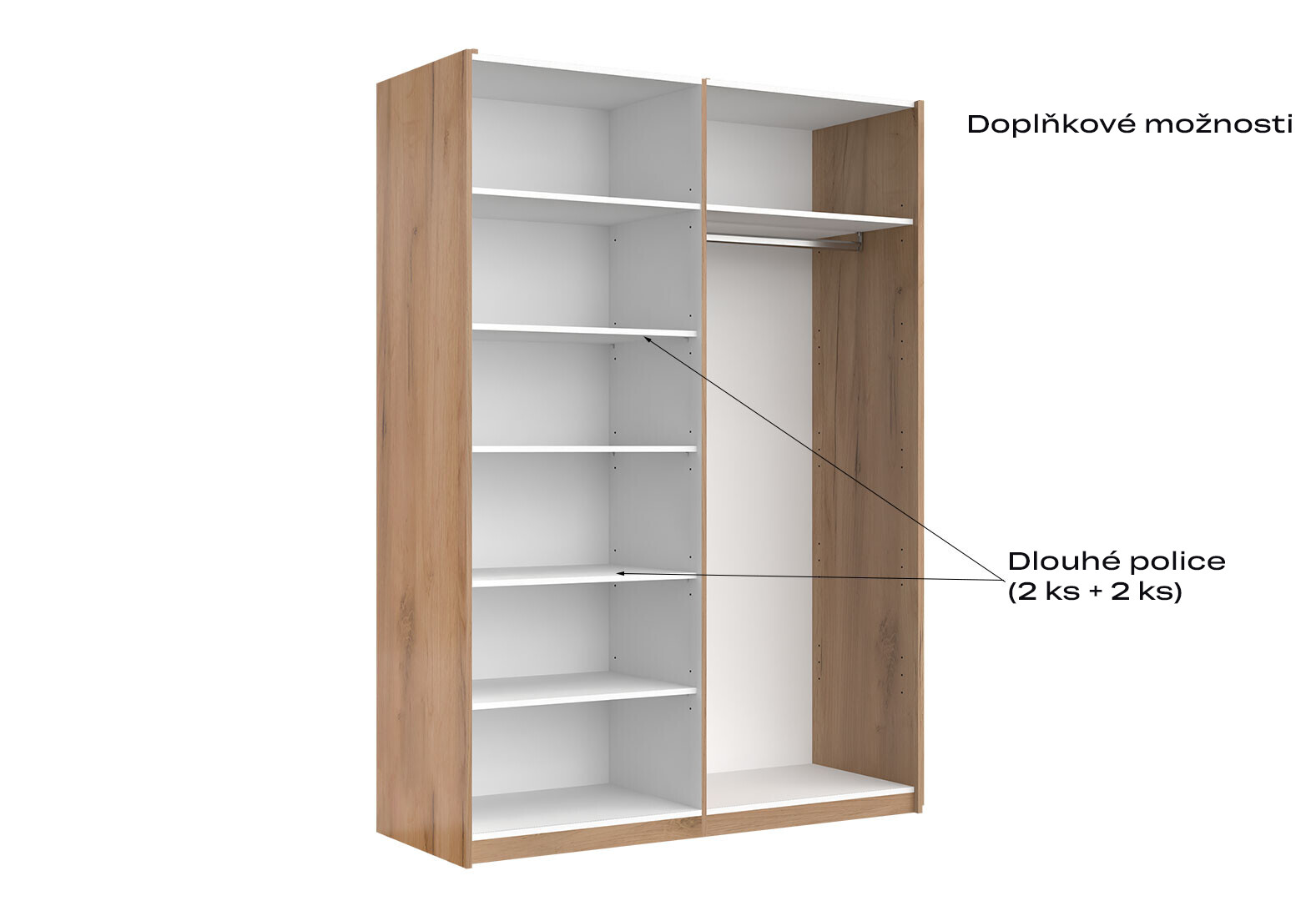 - Skříň s posuvnými dveřmi 1,5x2,1m (Dveře Lesklá Bílá/Zrcadlo) série N Asti