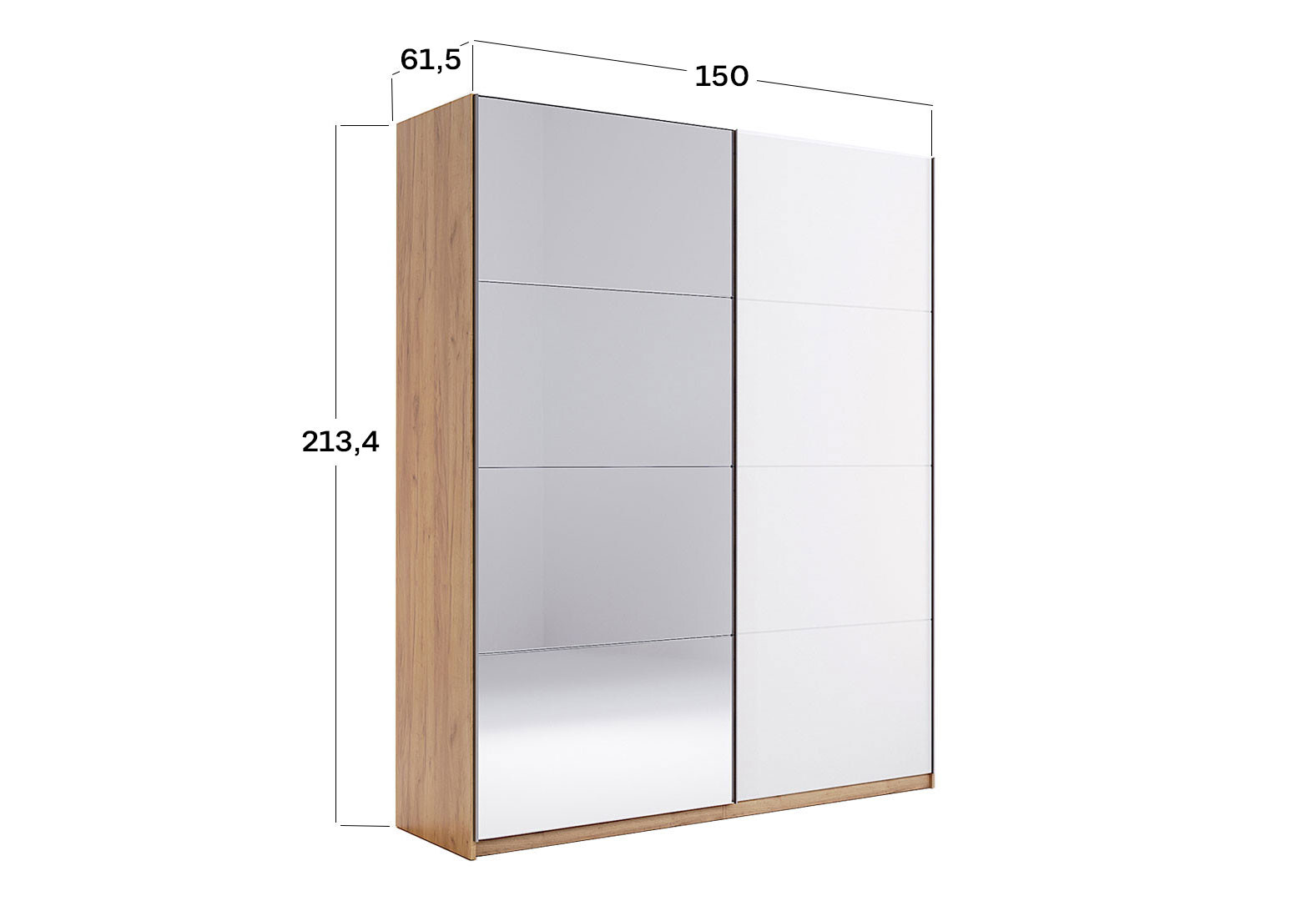 Skříň s posuvnými dveřmi 1,5x2,1m (Dveře Lesklá Bílá/Zrcadlo) série N Asti