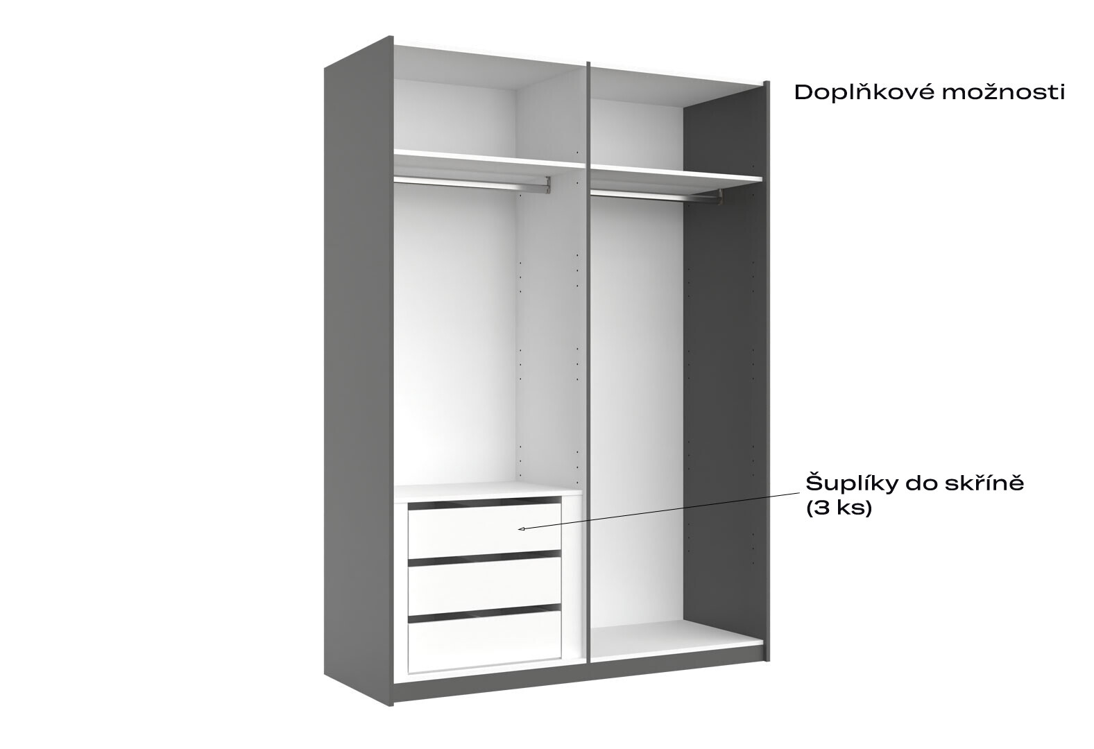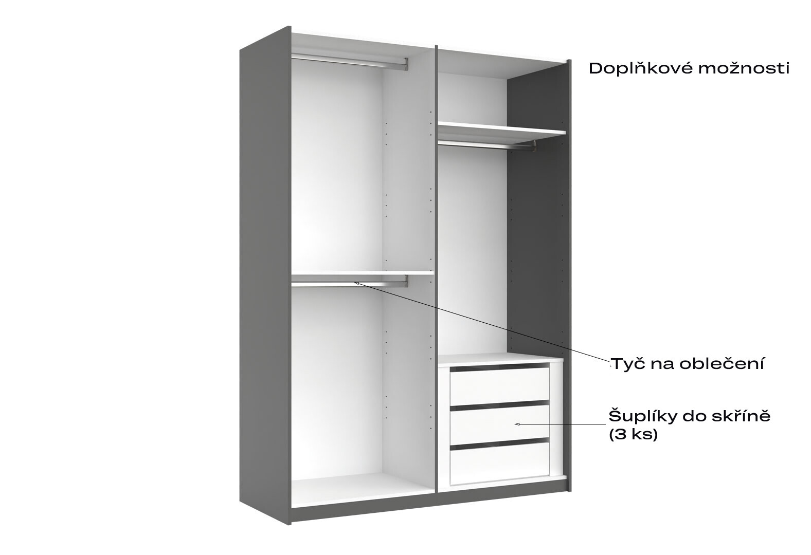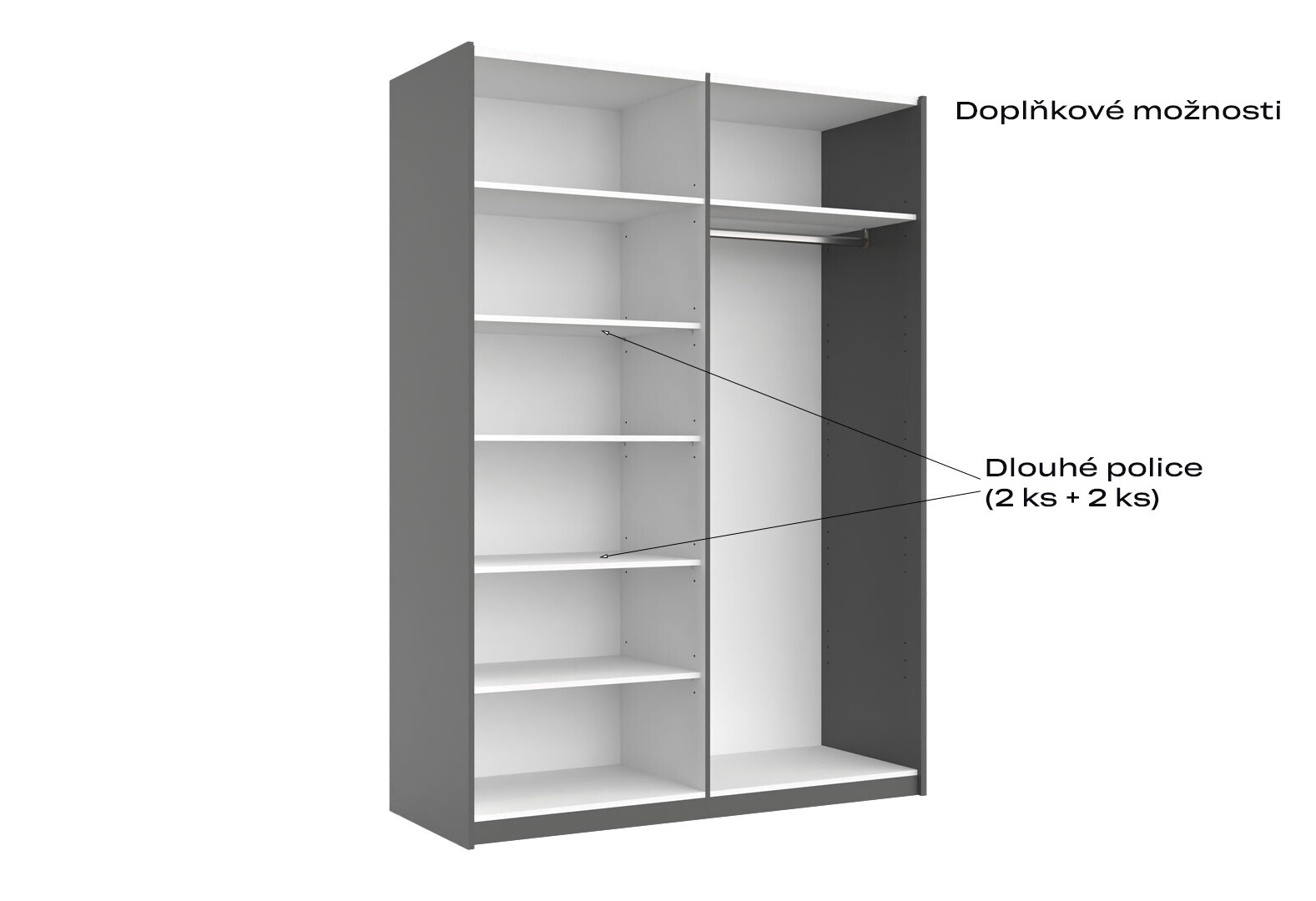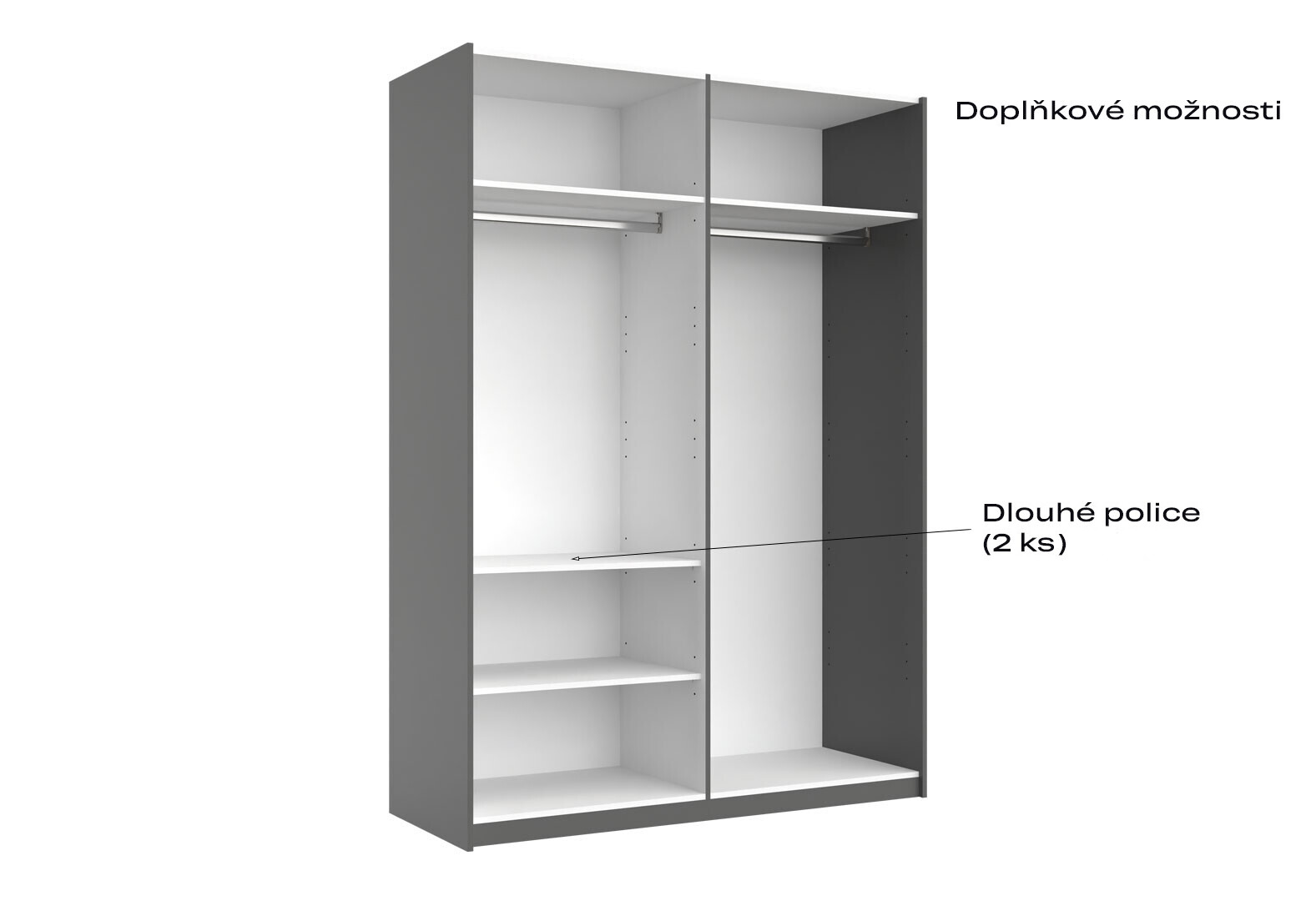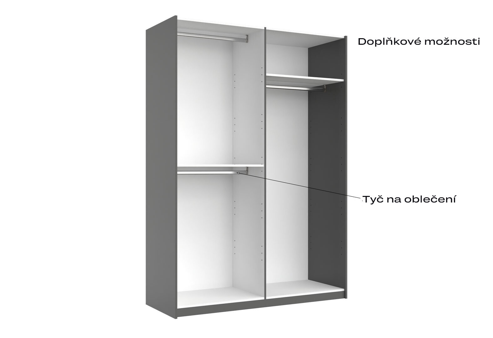 - Skříň s posuvnými dveřmi 1,5x2,1 m (Dveře Grafit/Zrcadlo) série N Dominika