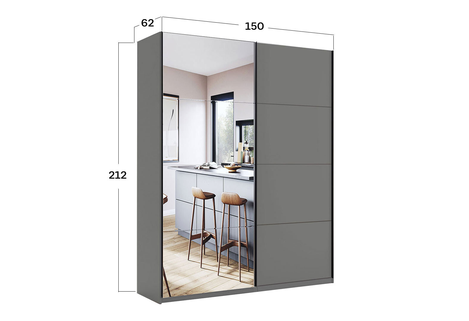 Skříň s posuvnými dveřmi 1,5x2,1 m (Dveře Grafit/Zrcadlo) série N Dominika