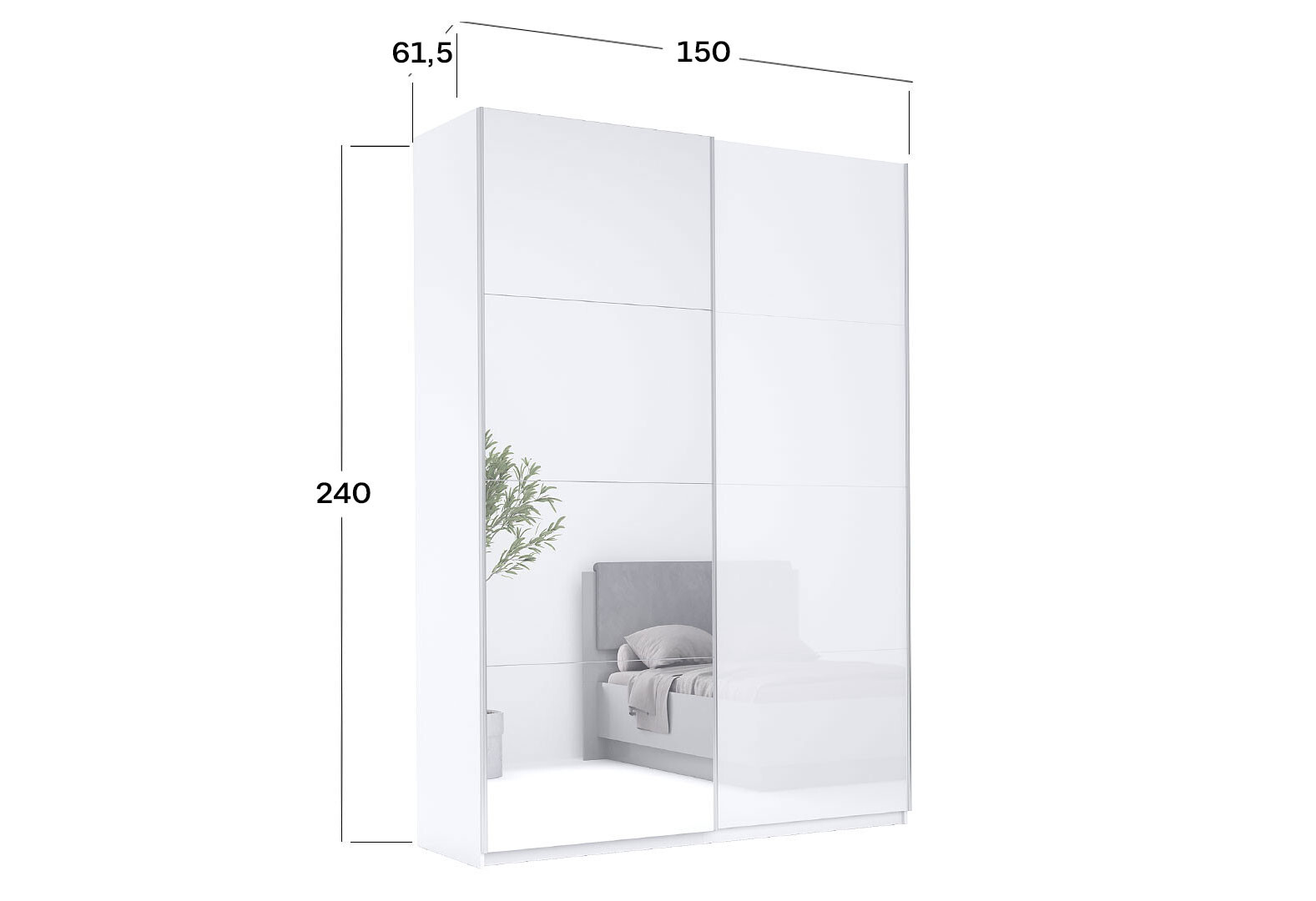 Skříň s posuvnými dveřmi 1,5x2,4m (Dveře Lesklé Bílé/Zrcadlo), série N Family