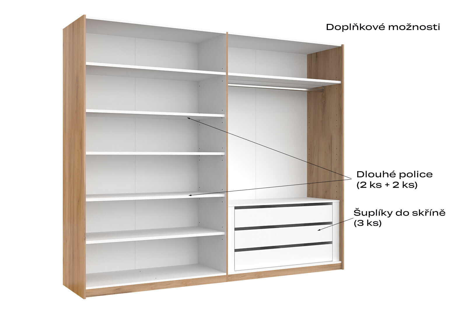 Fotografie 3 - Skříň s posuvnými dveřmi 2,5x2,1m (Dveře Lesklé Bílé/Zrcadlo) série N Asti