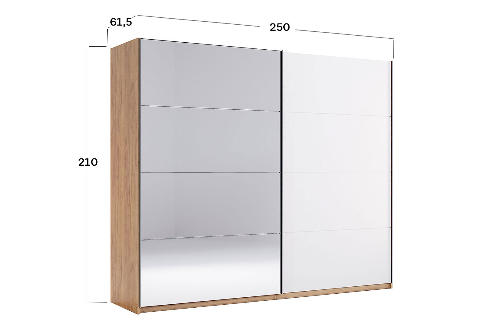 Skříň s posuvnými dveřmi 2,5x2,1m (Dveře Lesklé Bílé/Zrcadlo) série N Asti
