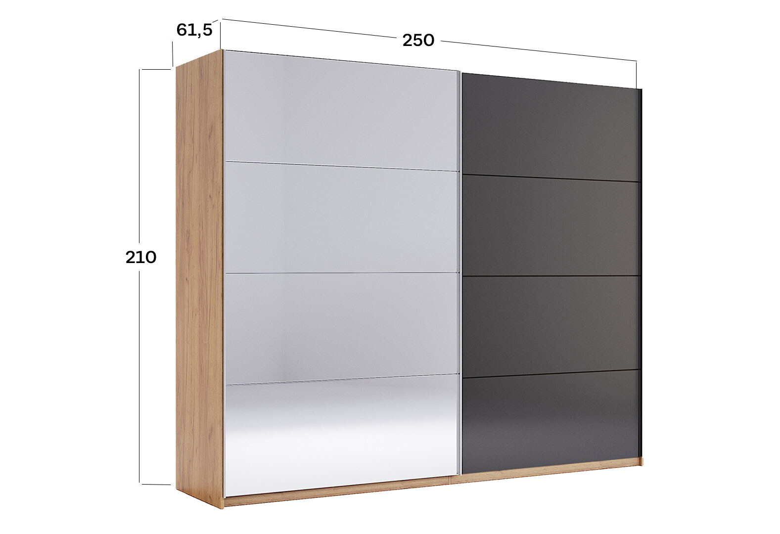 Skříň s posuvnými dveřmi 2,5x2,1m (Dveře Mat Láva/Zrcadlo), série N Luna