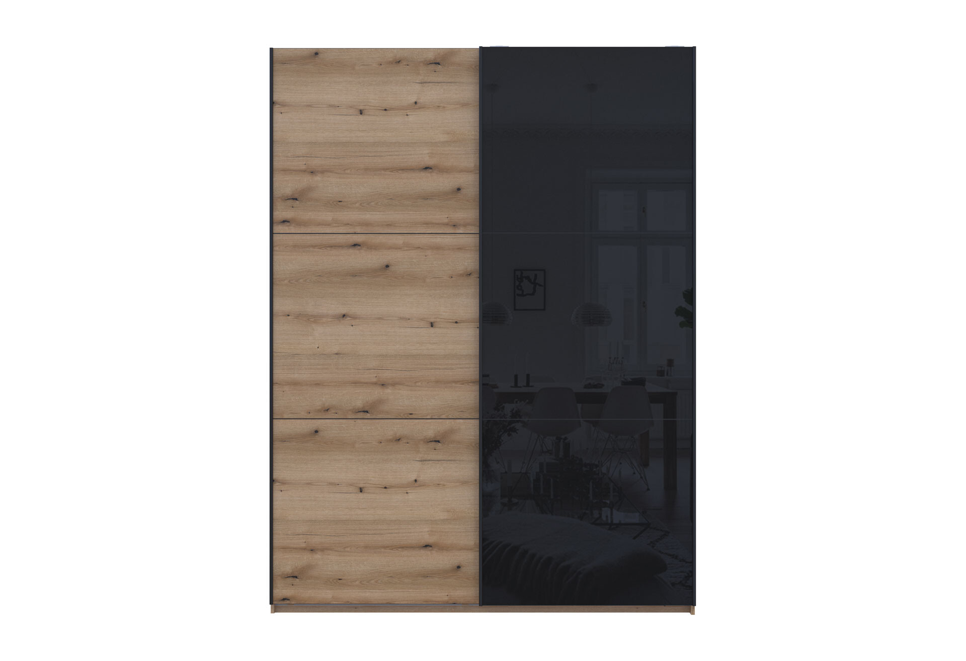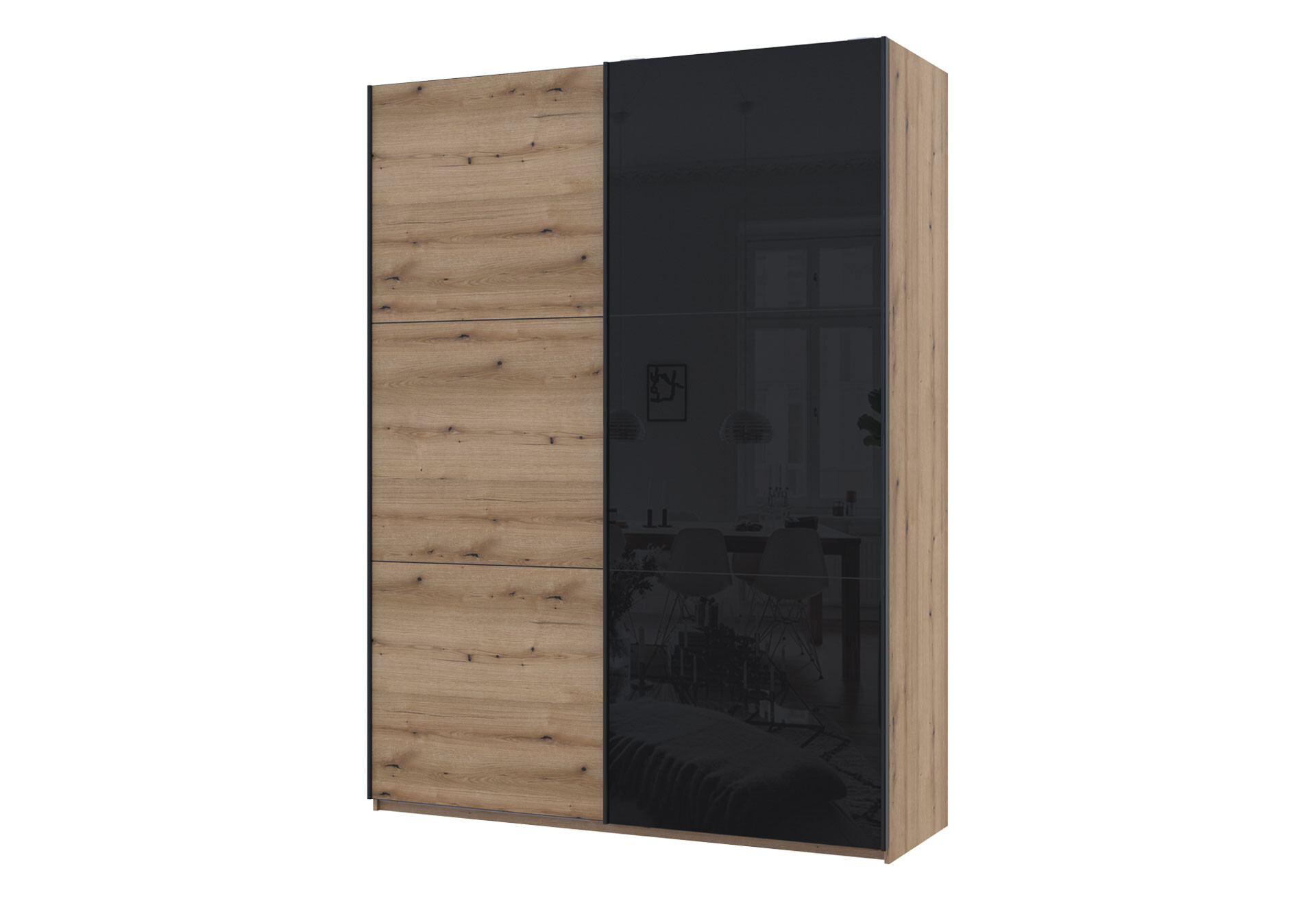 Skříň s posuvnými dveřmi G-Caiser 2dveřová: DTD + sklo, 180 cm, dub evoke / černá