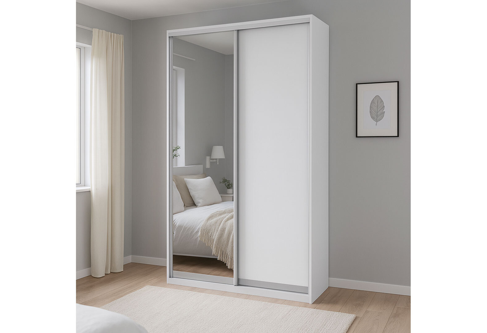 Skříň 2D 1200x600x2400, DTD + zrcadlo, bílá