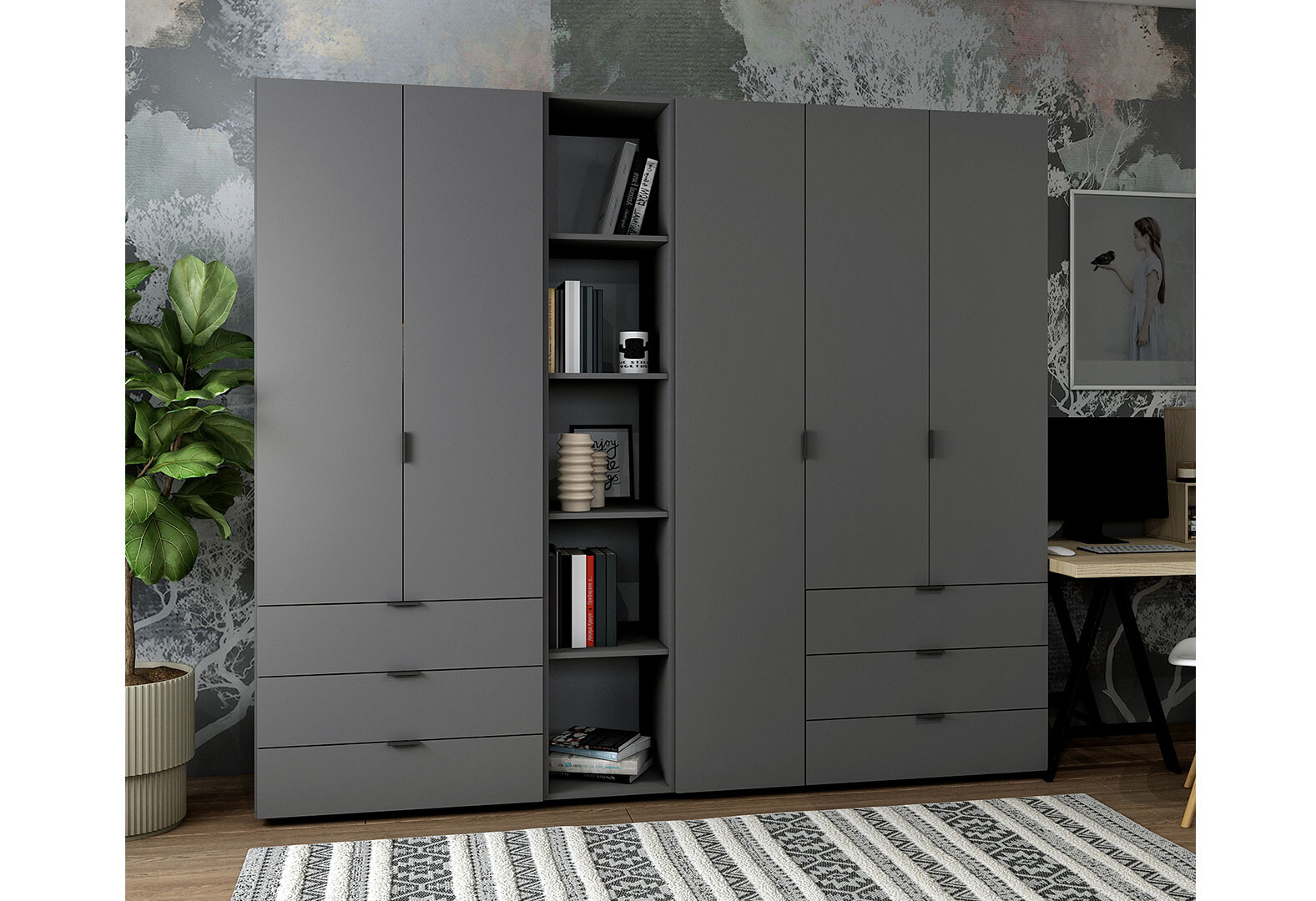 Skříň pětidveřová s regálem Gelar 232 cm Grafit