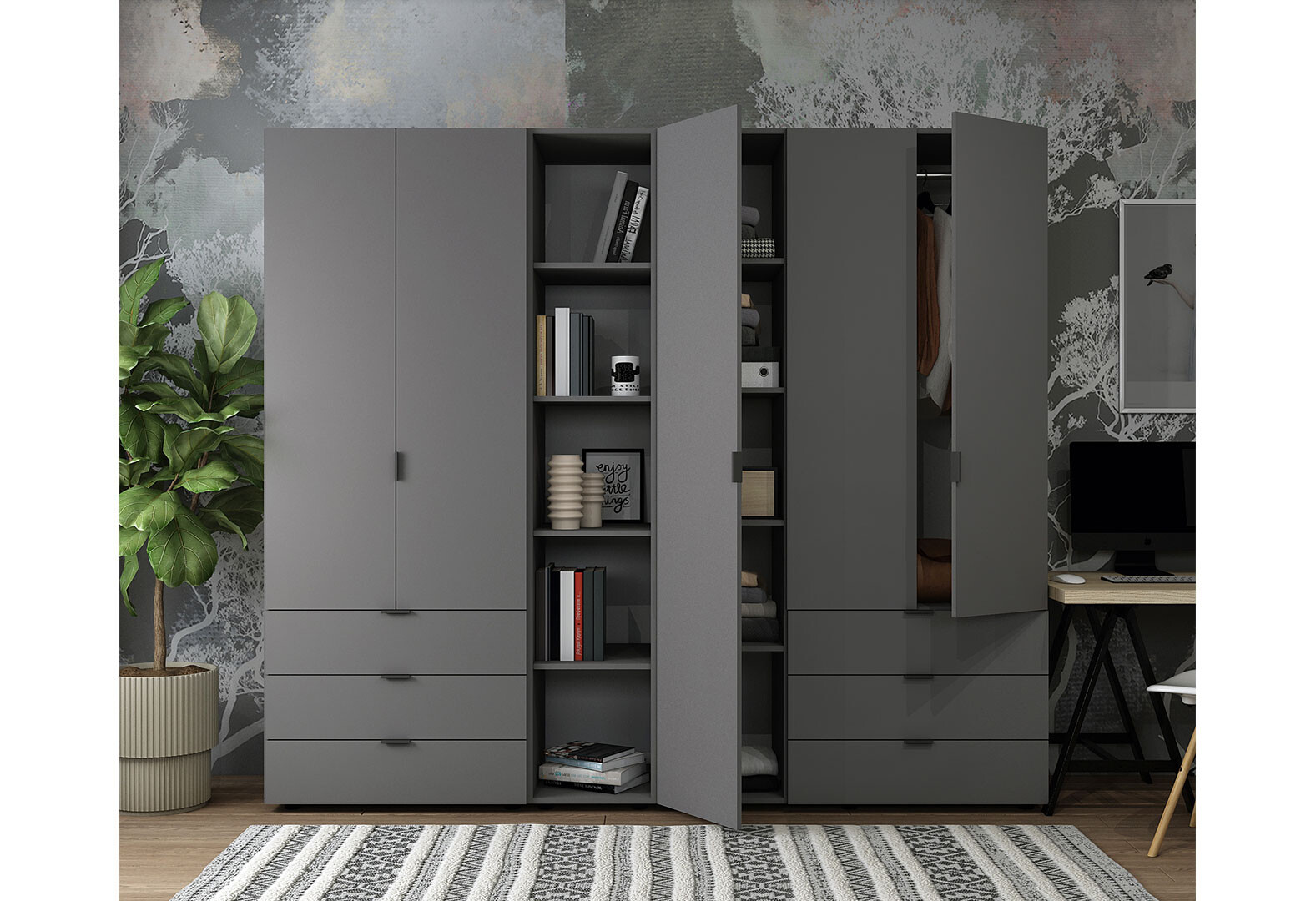- Skříň pětidveřová s regálem Gelar 232 cm Grafit
