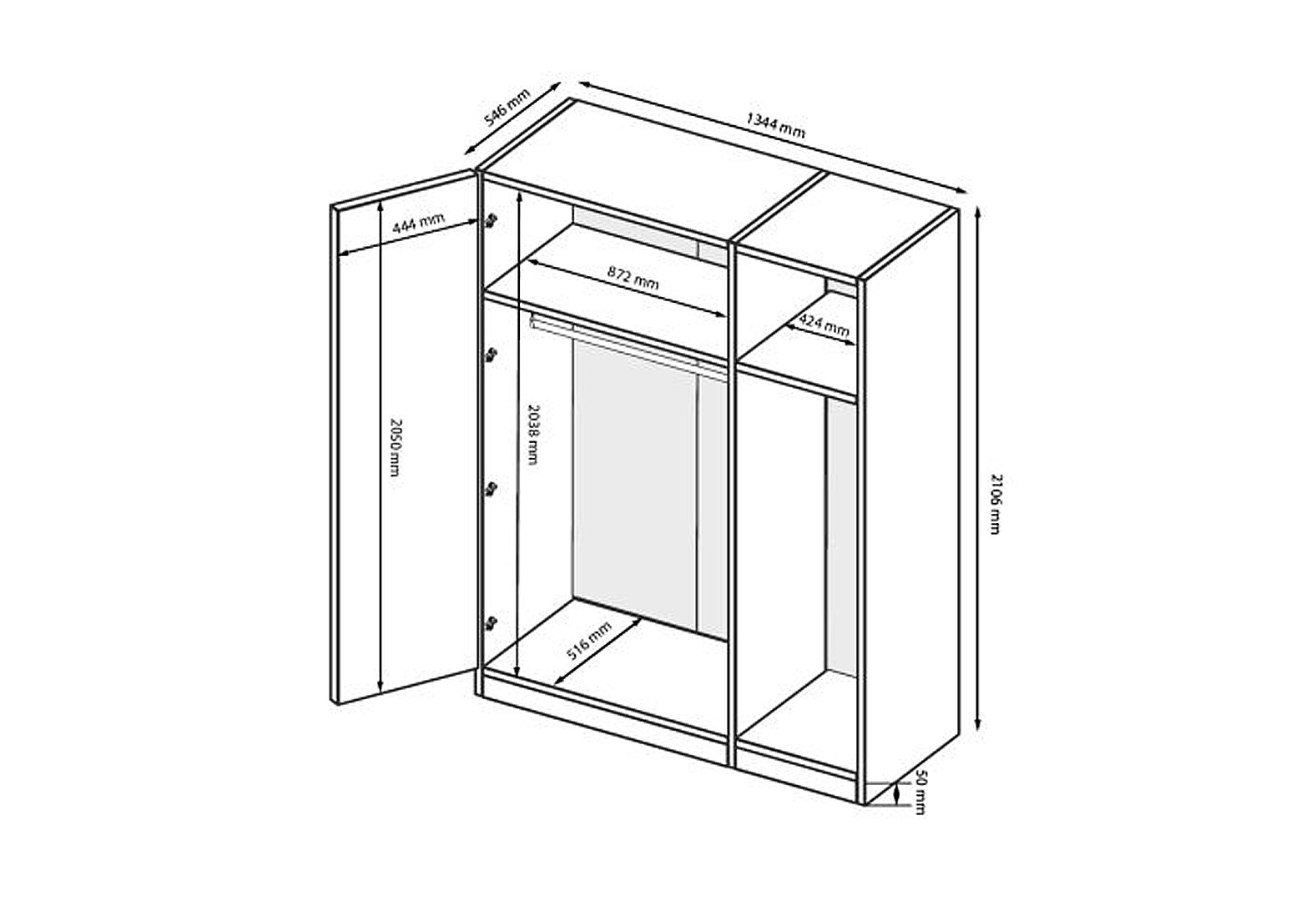 - Skříň 3D se zrcadlem, bílý lesk Mila