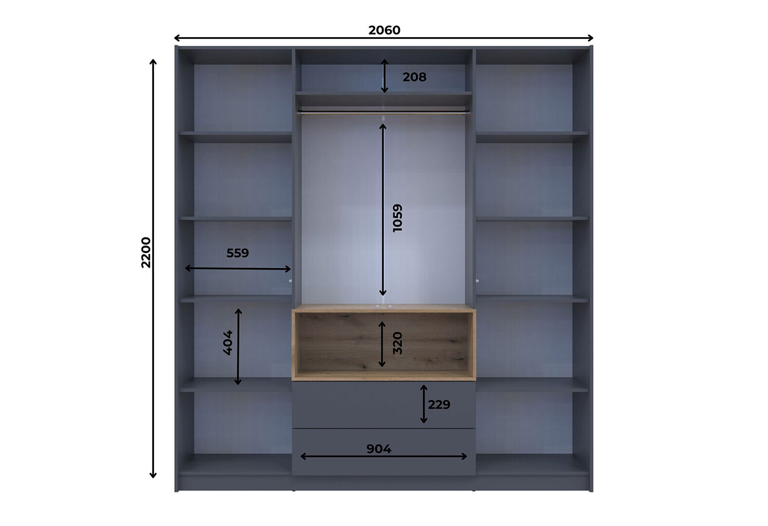 Skříň čtyřdveřová Dale 206x52x220 cm grafit / dub evoke Vystavený kus
