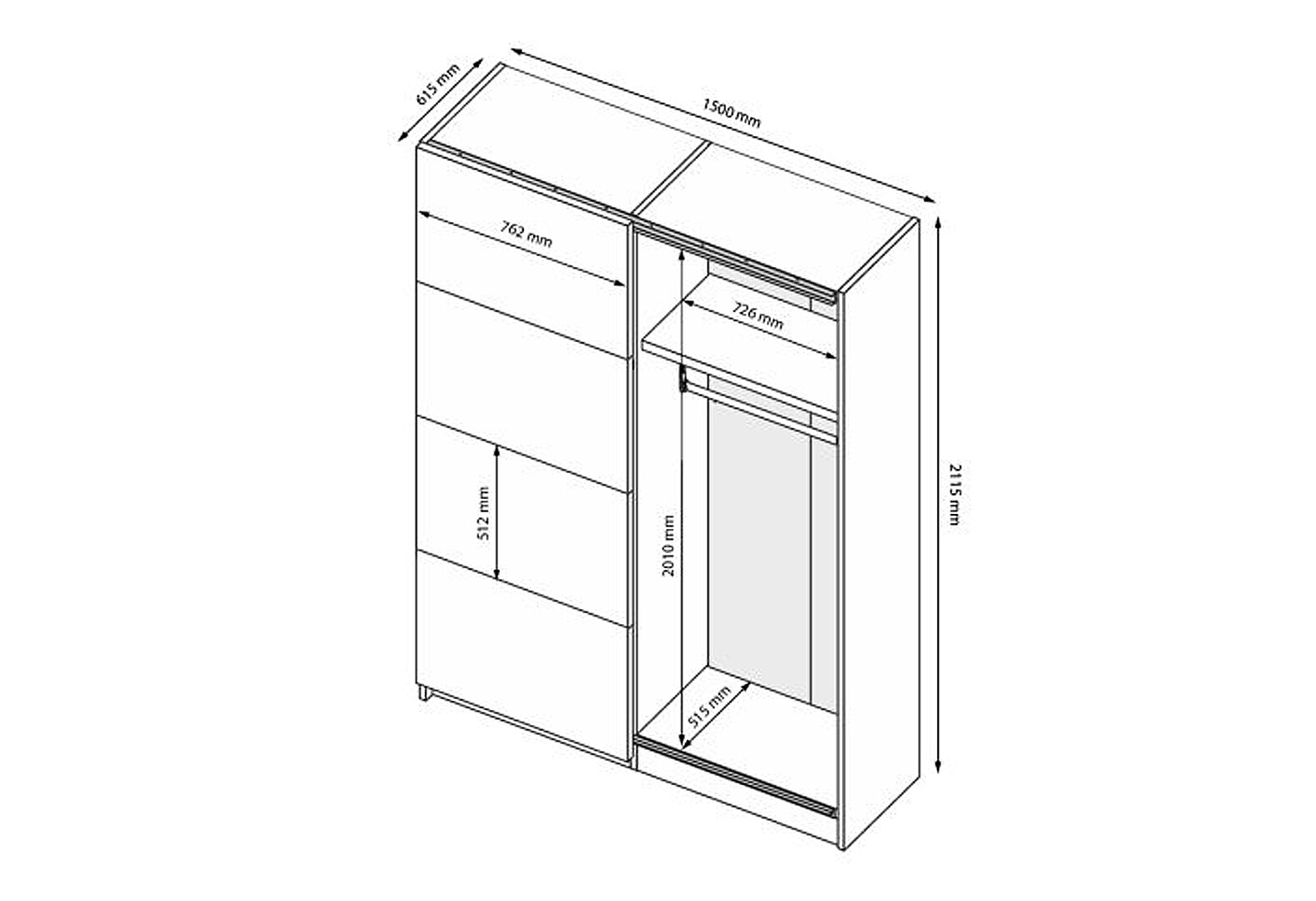 Skříň s posuvnými dveřmi 1.5х2.1m (Dveře bílý lesk/Zrcadlo) Mila