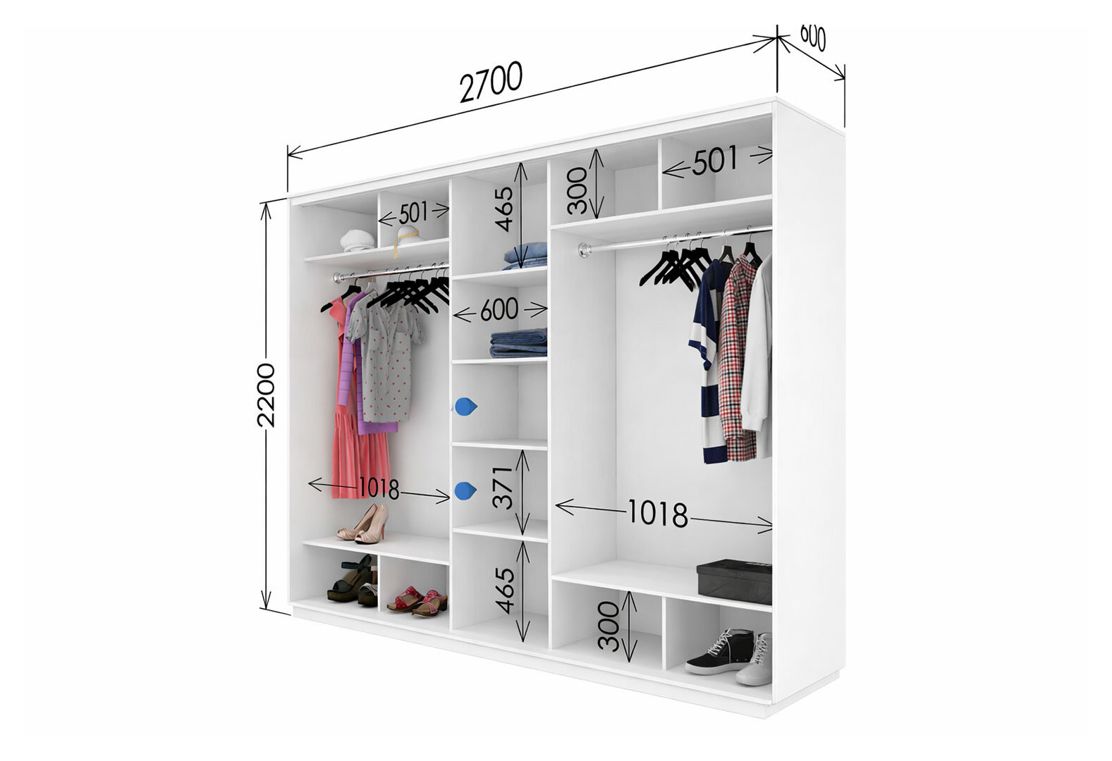 Fotografie 3 - Skříň s posuvnými dveřmi 2200x2700x600 3LTD nymphaea alba, profil stříbrný