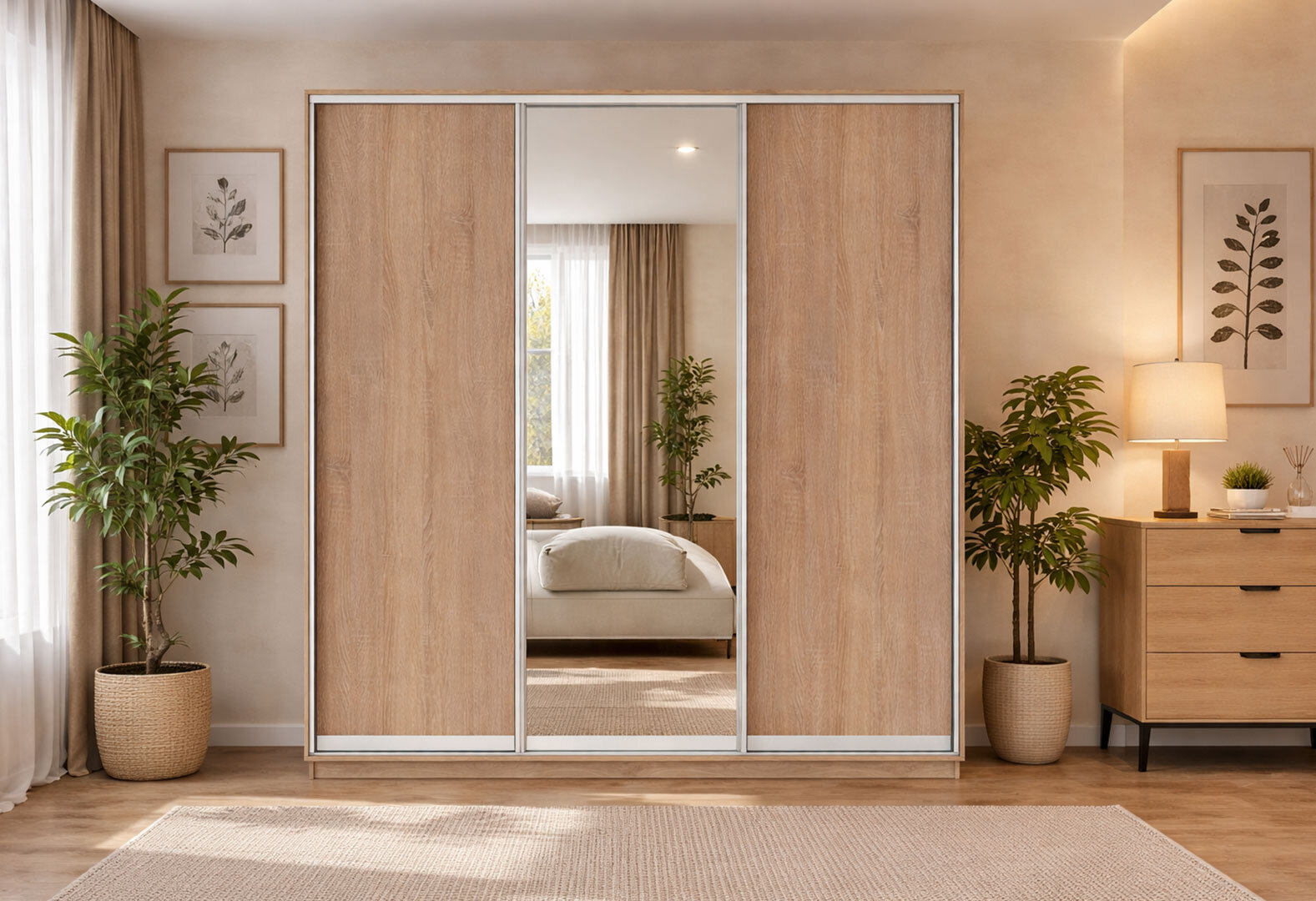 Fotografie 1 - Skříň s posuvnými dveřmi 2200x2700x600 2LTD 1 zrcadlo Dub Sonoma, profil stříbrný