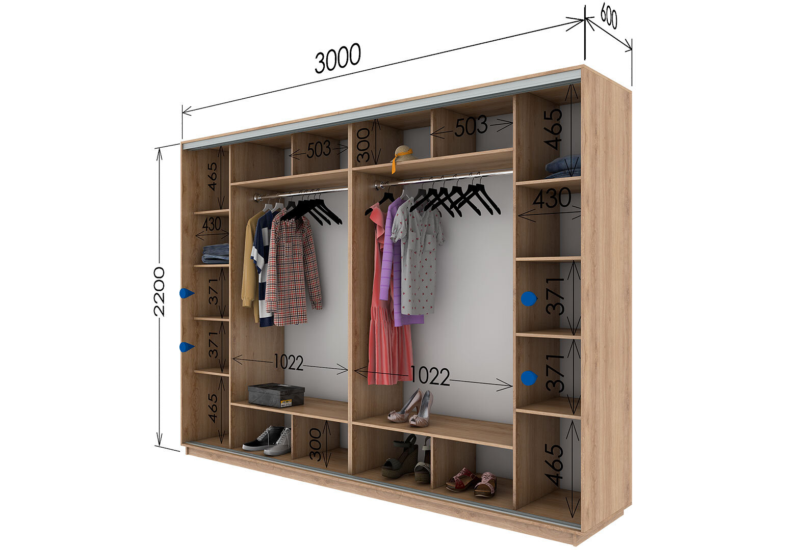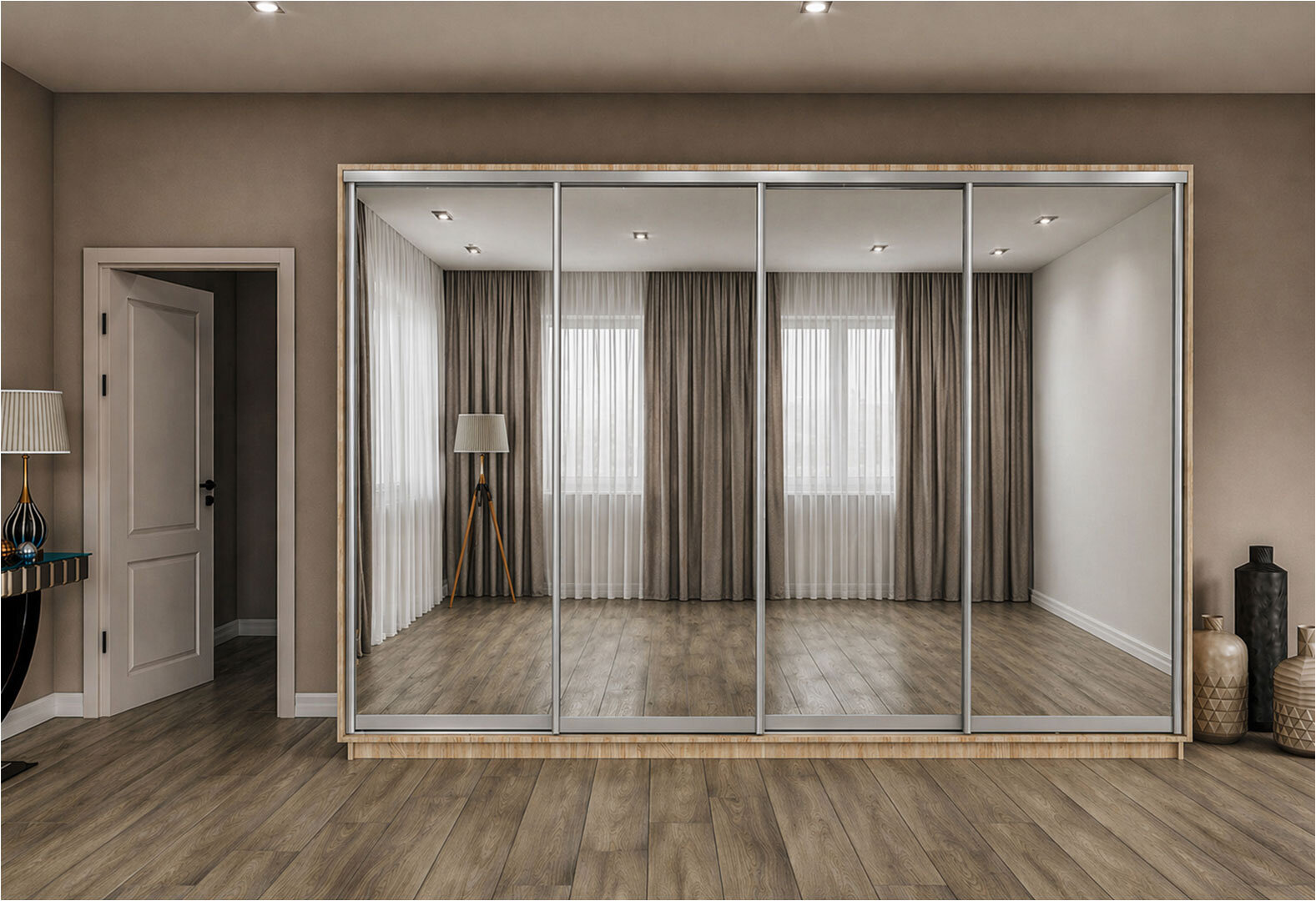 Fotografie 2 - Skříň s posuvnými dveřmi 2200x3000x600 4 zrcadla dub sonoma, profil stříbrný