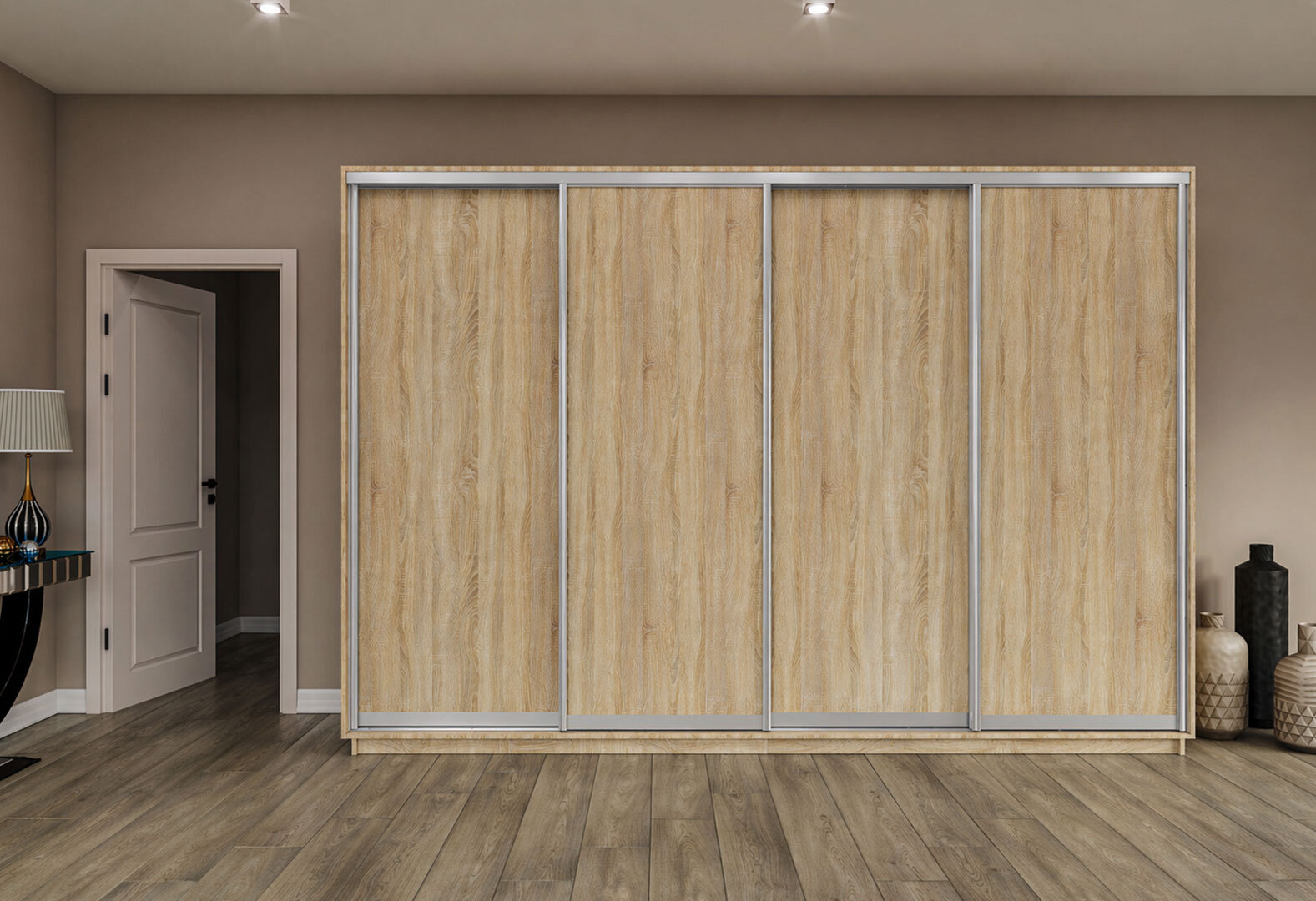 Skříň s posuvnými dveřmi 2200x3000x600 4LTD dub sonoma, profil stříbrný