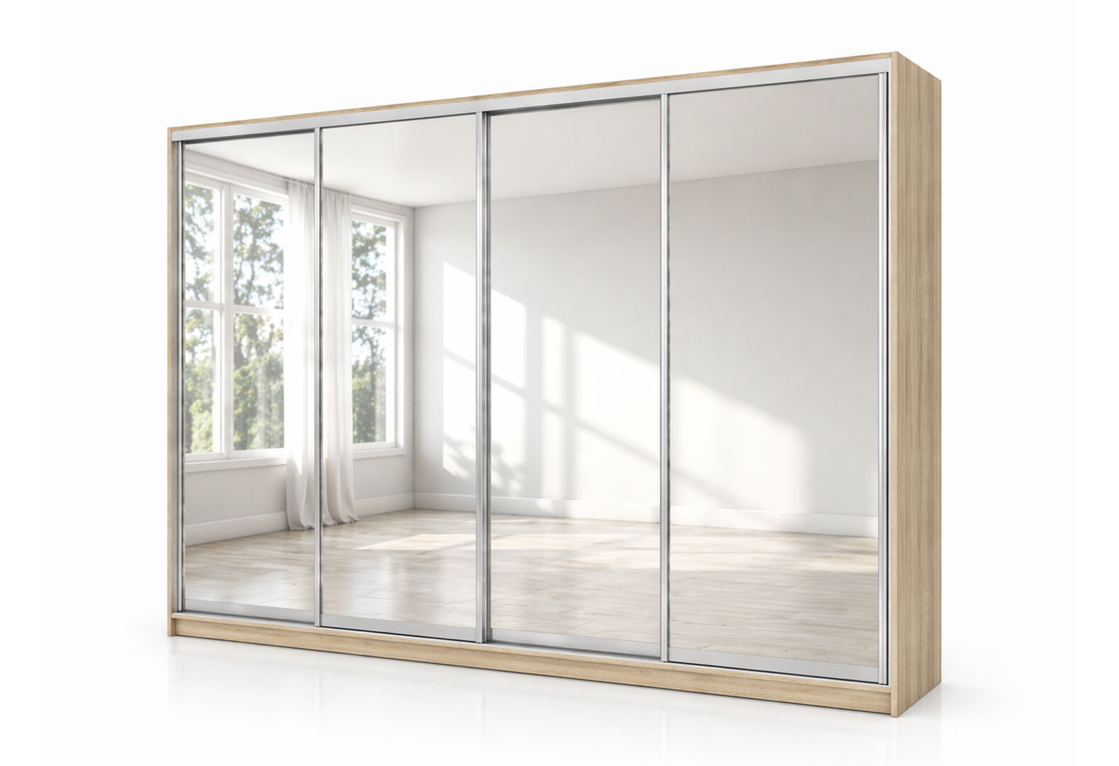 Fotografie 2 - Skříň s posuvnými dveřmi 2400x3000x600 4 zrcadla dub sonoma, profil stříbrný