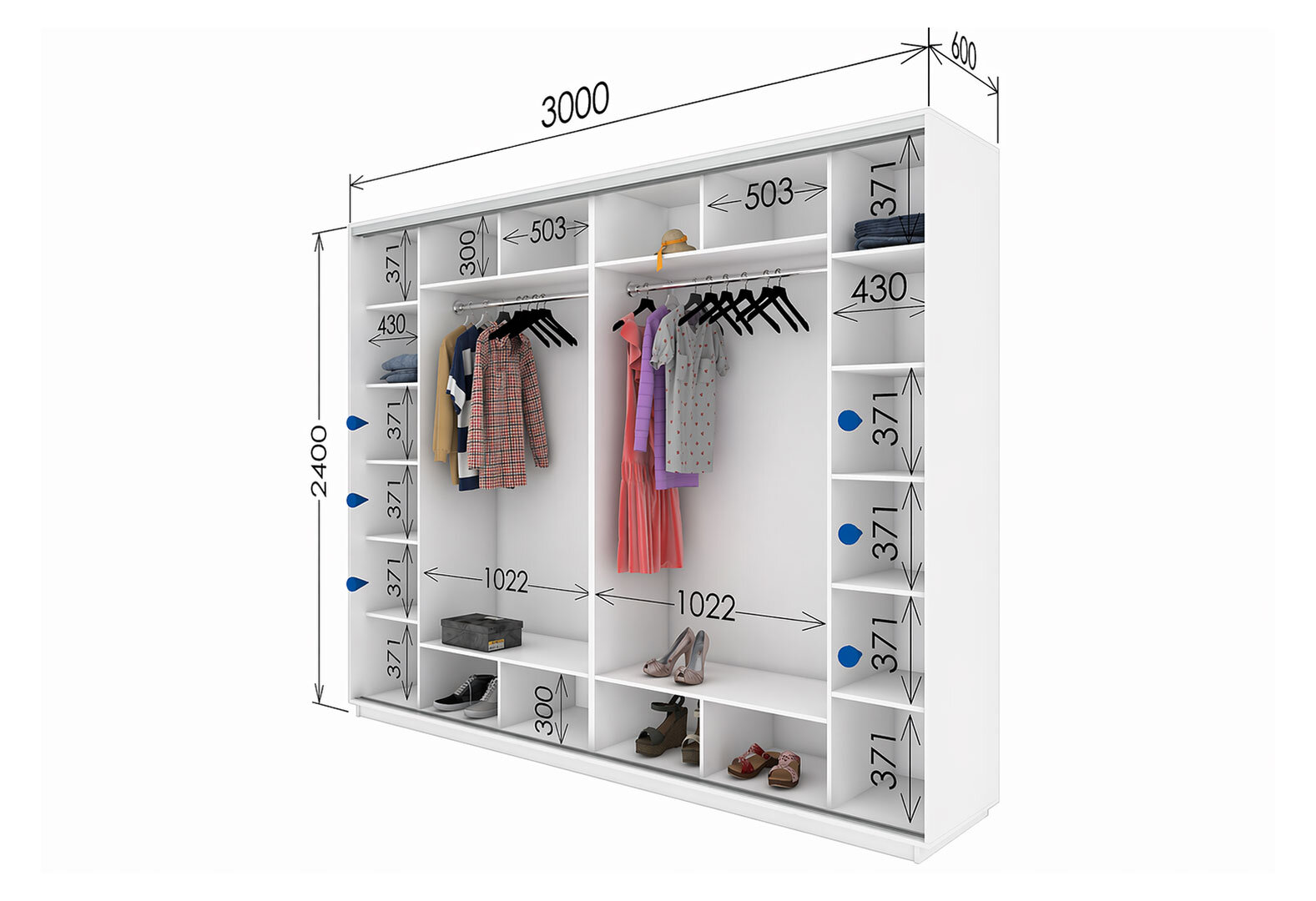 Skříň s posuvnými dveřmi 2400x3000x600 4LTD nymphaea alba, profil stříbrný