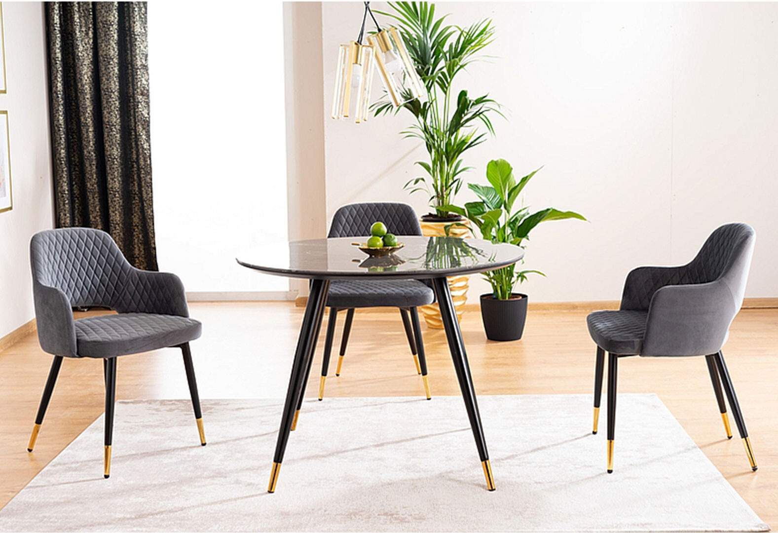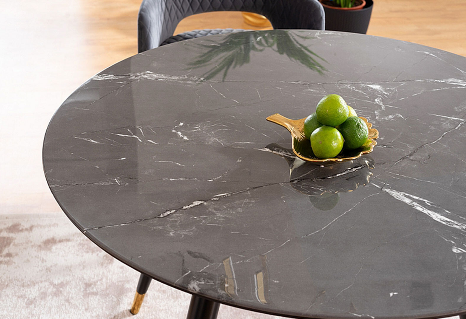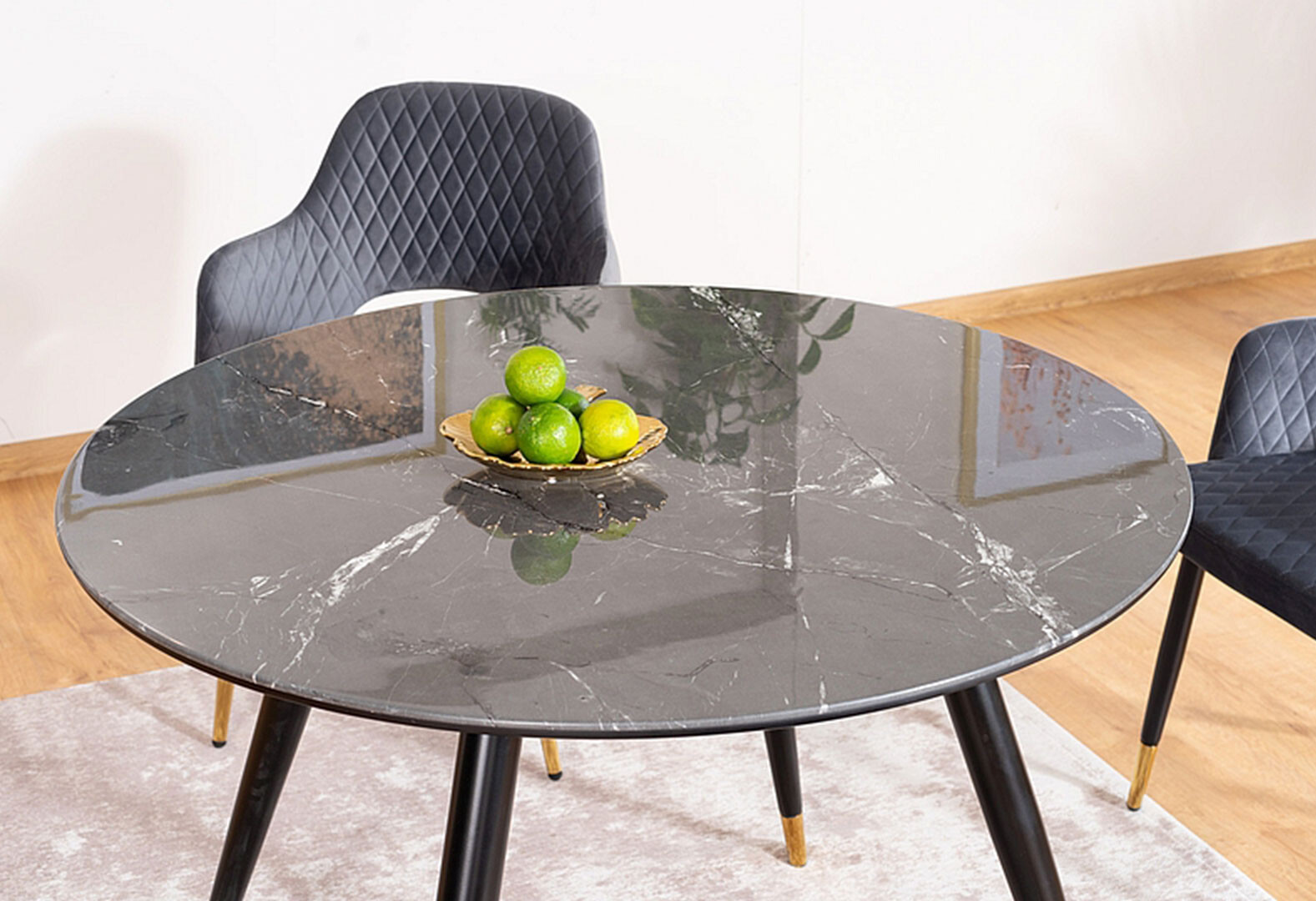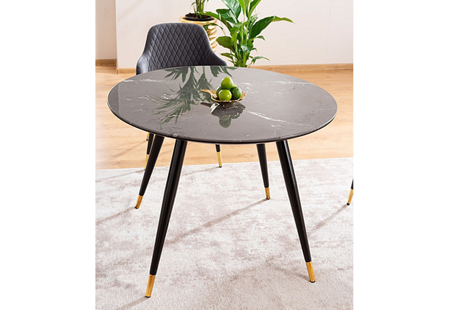 Fotografie 4 - Stůl Cyryl II 100 kamenný efekt černá + zlatá