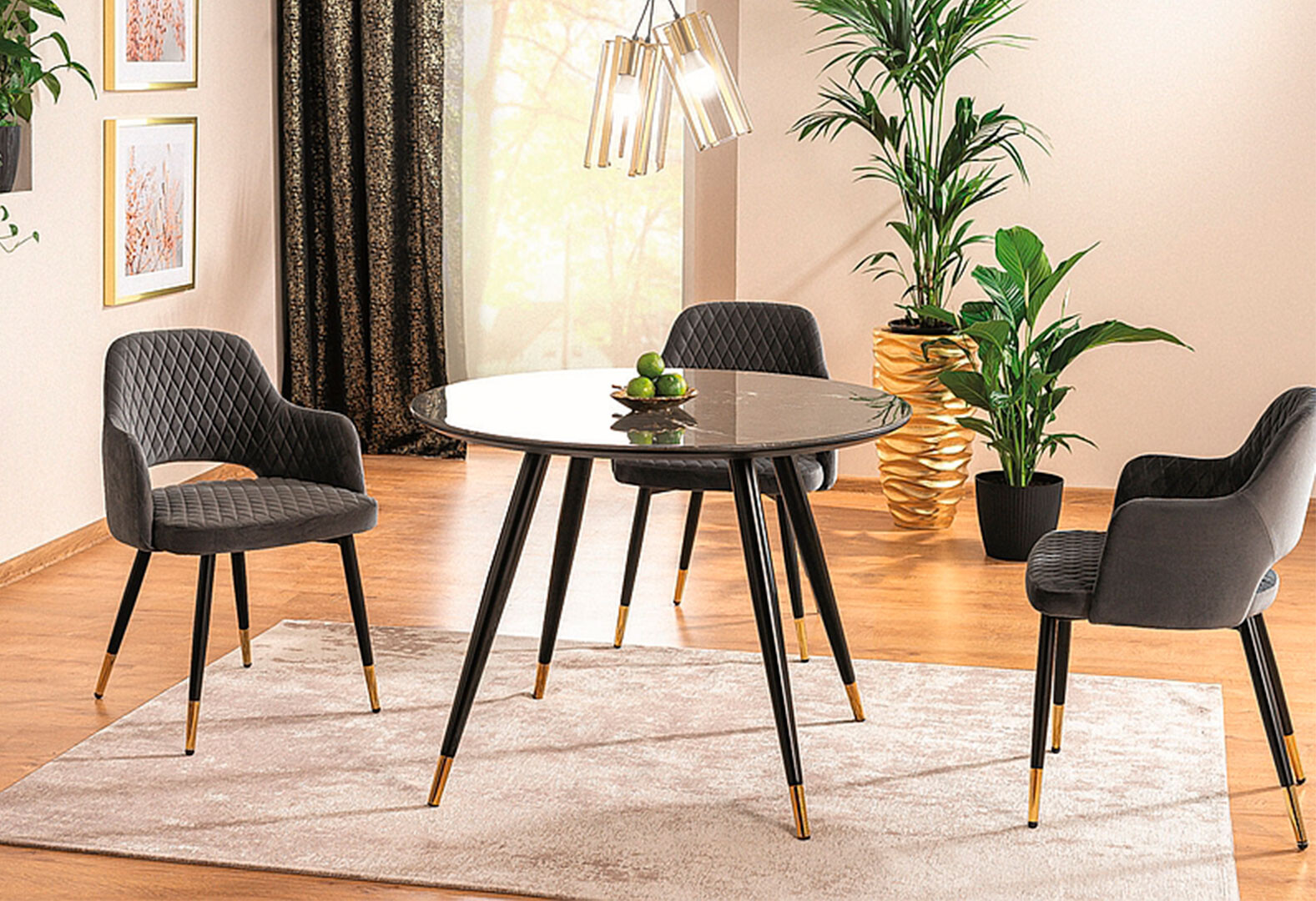 Fotografie 2 - Stůl Cyryl II 100 kamenný efekt černá + zlatá