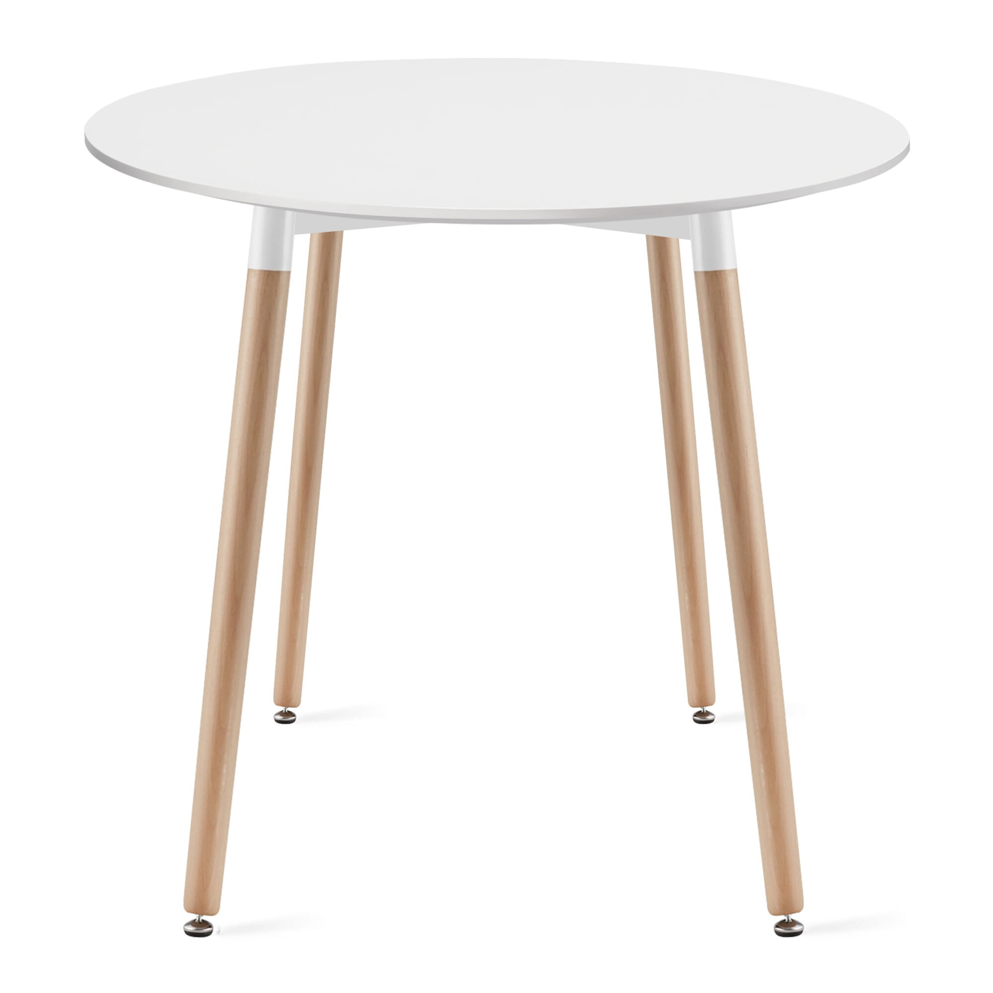 Stůl KAMI Kulatý 80cm - bílý / přírodní nohy