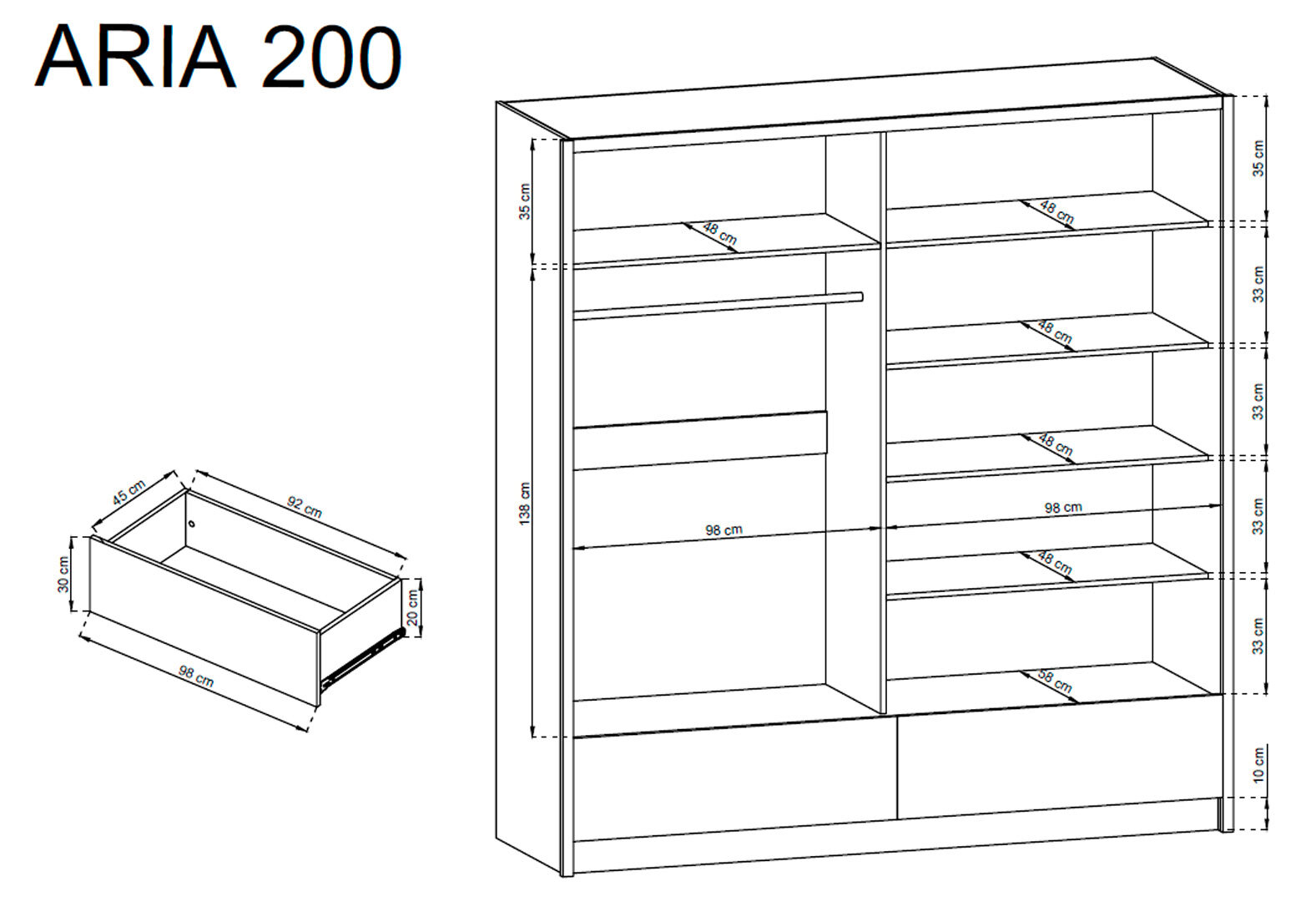 Fotografie 3 - Skříň Aria I 200 černá / černý lesk