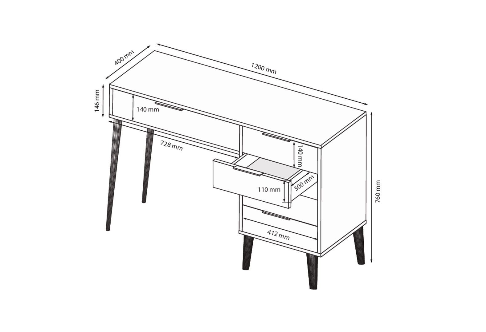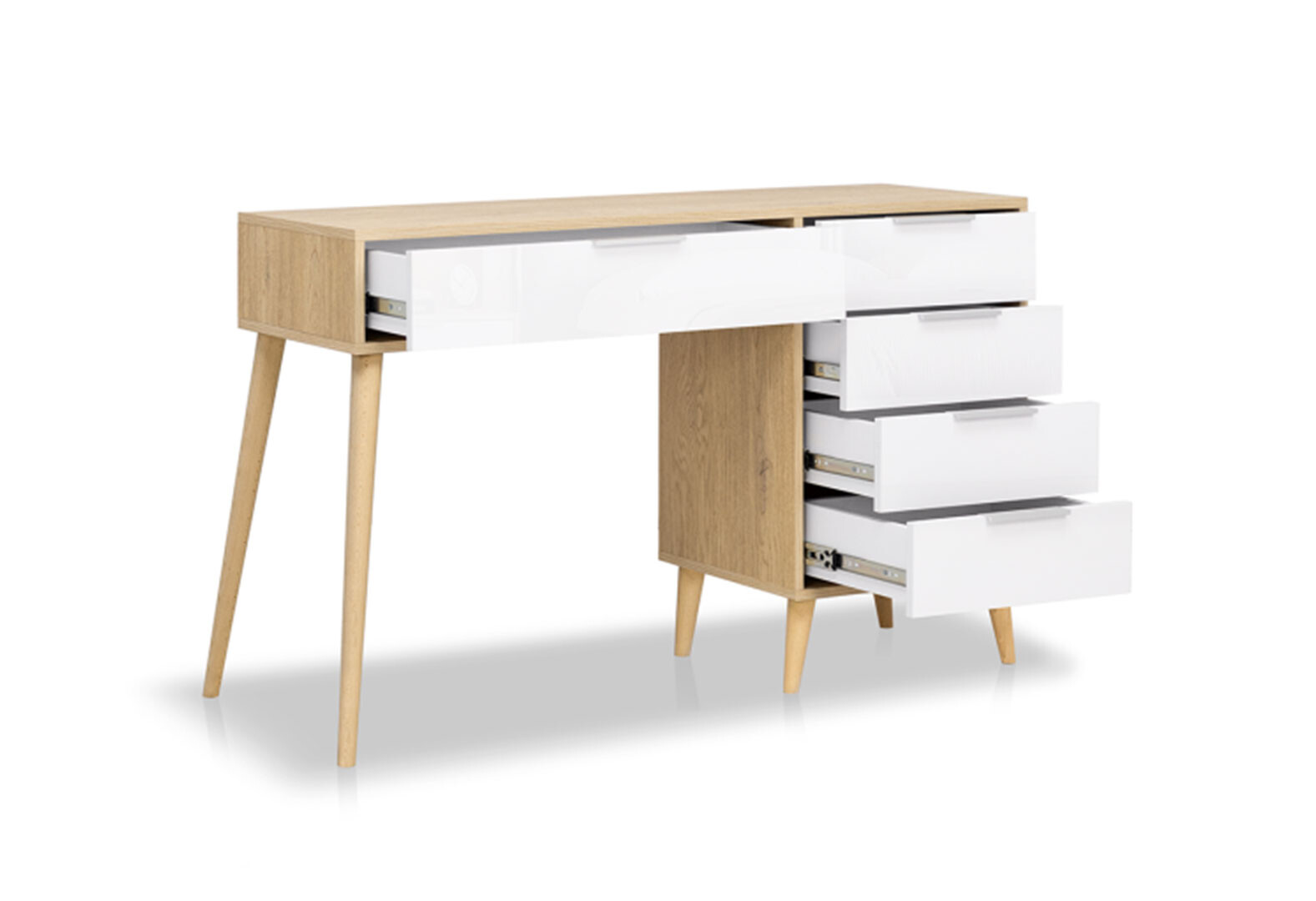 Fotografie 4 - Toaletní stolek 5šx lesklá bílá / dub cremona Olivia