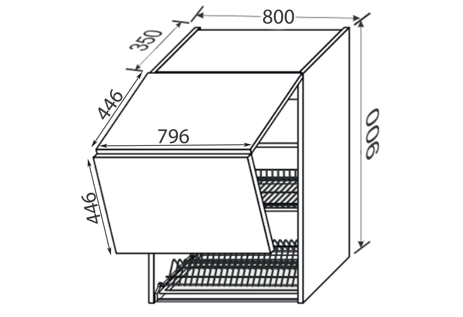 Vrchní skříňka 80VS/900 2dv sušička Aventos Pro Blum+Rejs Mary