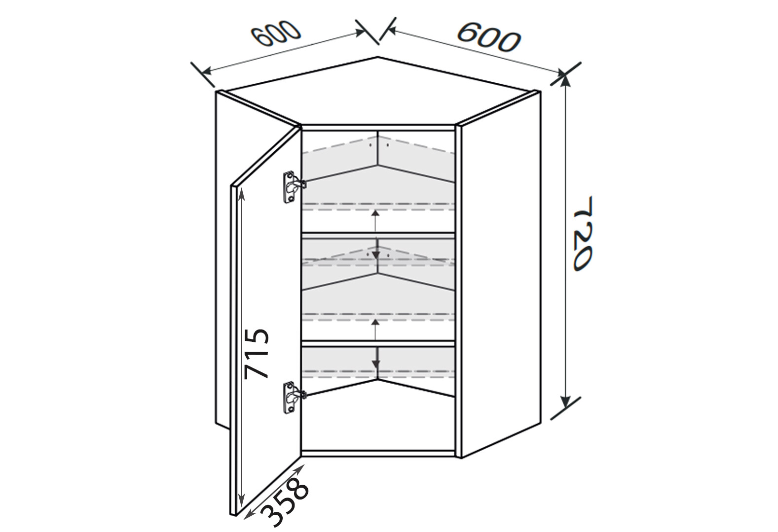 Vrchní roh 45°/720 (600x600) 1dveře Pro Blum Vintage