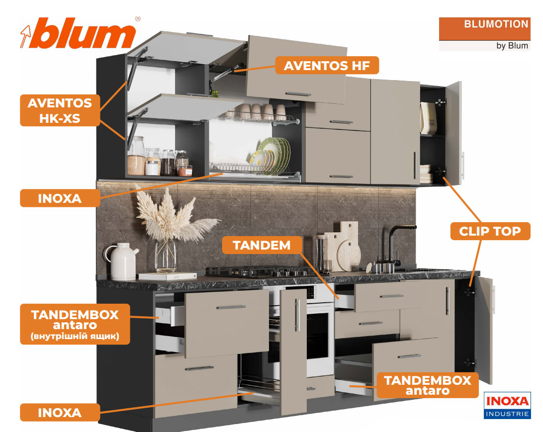 - Materiál korpusu. Dřevotříska zajišťuje pevnost a odolnost, což je klíčové pro každou kuchyň.