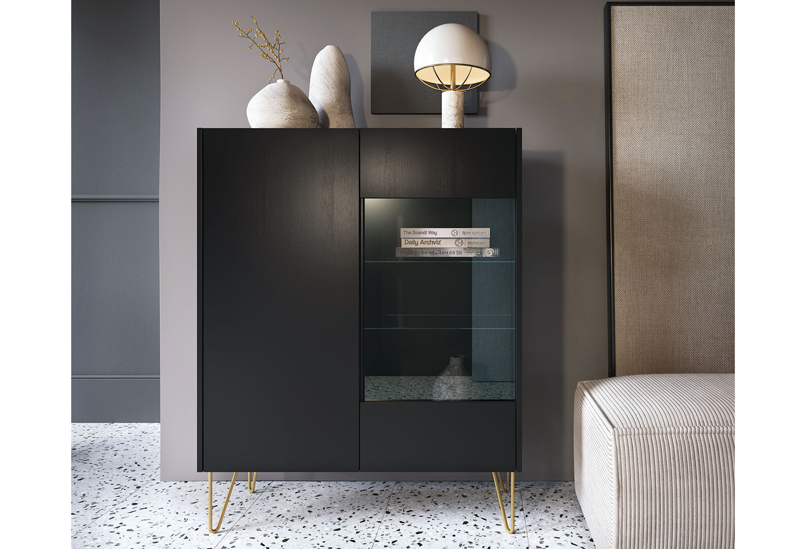 Vitrína WT97 černý grafit / černý royal mramor Harmony