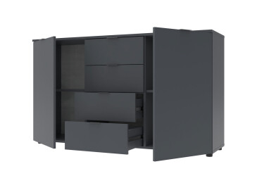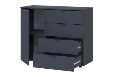 - super-cena, skladem, dřevotříska, laminovaná, s dvířky, grafit, kuličková vedení plného výsuvu, 4 zásuvky, dřevotříska, moderní styl.