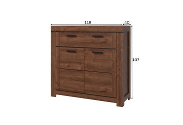 - super-cena, dřevotříska + MDF, laminovaná, patinovaná, s dvířky, dub navarra, kuličková vedení plného výsuvu, 3 zásuvky, dřevotříska, moderní styl.