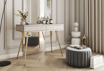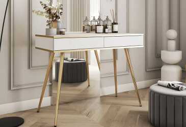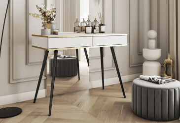 - super-cena, bez zrcadla, MDF, zlatý / bílý, volně stojící, dřevotříska, skandinávský styl.