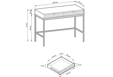 - super-cena, bez zrcadla, MDF, černý kov / bílý, volně stojící, kuličková vedení s dotahovačem, dřevotříska, moderní styl.