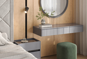 - super-cena, bez zrcadla, dřevotříska, lesklá, šedá činčila, závěsný, kuličková vedení plného výsuvu, dřevotříska, moderní.