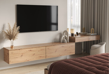 - top, skladem, dřevotříska, laminovaná, dub artisan, volně stojící, kuličková vedení plného výsuvu, s police a zásuvky, dřevotříska, skandinávský styl.