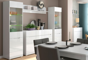- super-cena, MDF, možnost osvětlení polic, lesklá, dřevotříska, moderní styl.