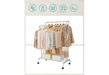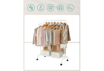 3. Přenosné jsou regály, většinou kovové, s minimálně třemi podpěrami a mnoha háčky na různých úrovních.